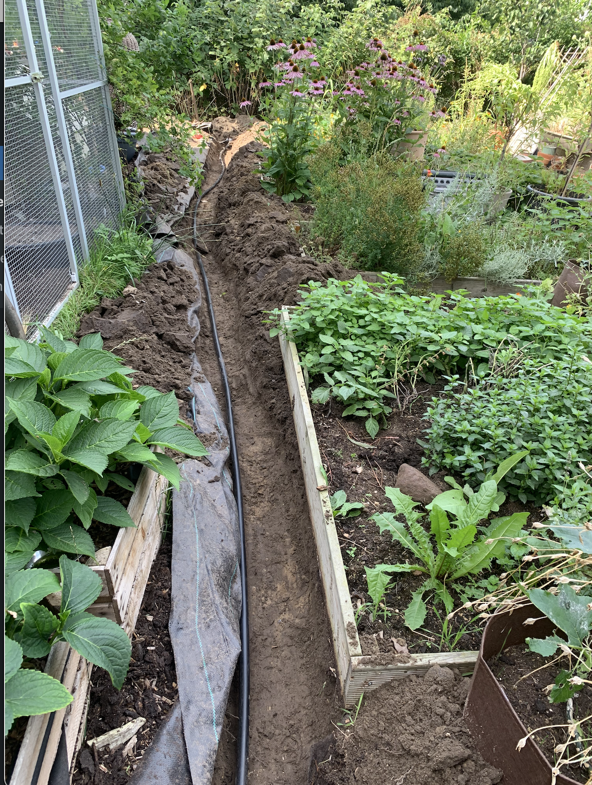 - die Leitungsgräben wurden ausgehoben (das hat übrigens einen ganzen Tag gedauert- es ist eben auch echt viel Buddelarbeit gewesen )