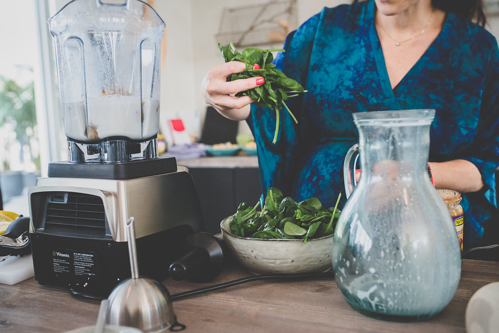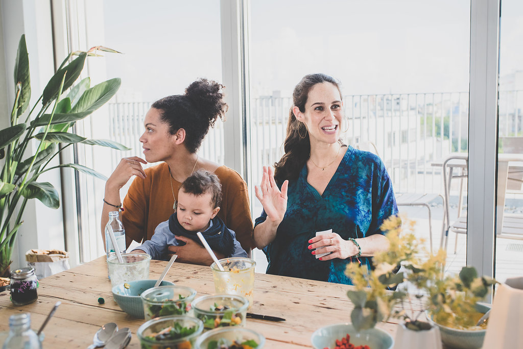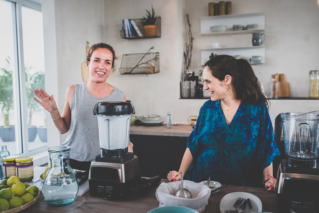 Es war also alles rundum gut und liebevoll. Nach dem Worksop gab es noch ein gemeinsames Abendessen, an dem Liora und ich nebeneinader saßen und immer und immer weiter geredet haben. Wie schon gesagt, es war Liebe auf den ersten Blick. Wir (ich ) mussten uns schon innerhalb des Workshops schon sehr an unsere guten Manieren erinnern, damit wir nicht anfangen, uns die ganze Zeit alleine zu unterhalten, vom Thema abzuschweifen und unsere Rezepte auszutauschen. Aber dafür war ja glücklicherweise hinterher noch genügend Zeit. Wie ihr merkt, ich hatte einen wirklich schönen Nachmittag und mein Baby war auch im Geschmackshimmel, als es aufgewacht ist. Er hat sich mehr oder weniger mit Linsensalat, Tahini und seinem geliebten grünen Smoothie vollgestopft, dabei immer wieder mit Liora gekuschelt den Babybauch liebevoll gestreichelt und sich genau wie icg rundum Wohl gefühlt. Der grüne Smoothie ist eine Rezeptur, die Liora und ich beide gefühlt täglich in unserem Mixer zubereiten, nur das sie ihre Mandelmilch noch mit Vanille verfeinert. Die Vanille verlinke ich euch am Ende des Textes noch mal, die ist nämlich nun auch bei uns ein fester Bestandteil geworden.