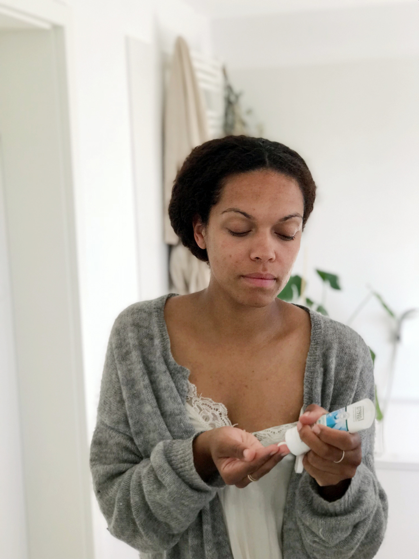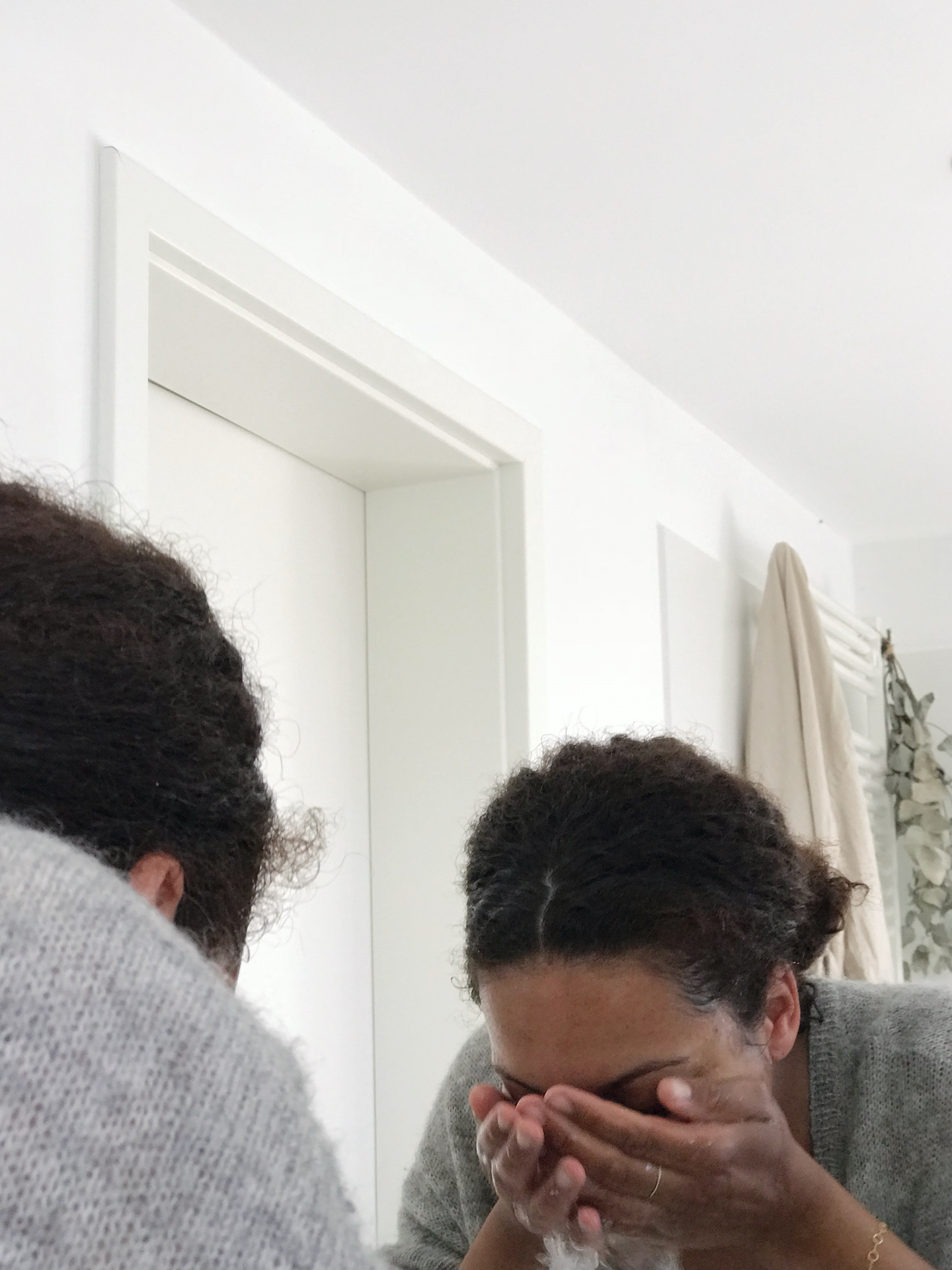 Es beginnt mit meiner immer gleichen Pflegeroutine bestehend aus: