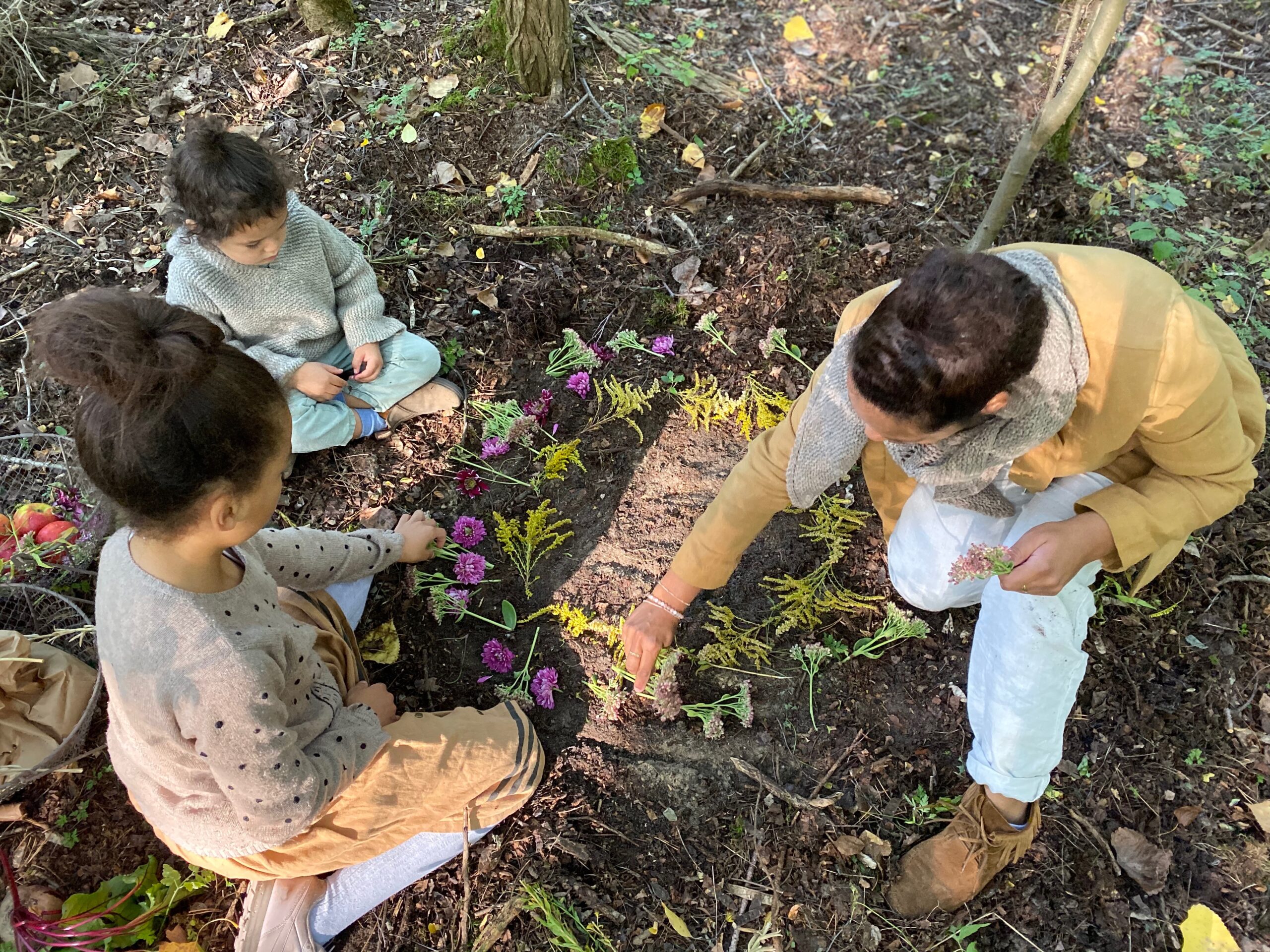- nachdem der Tisch/Altar mit all den Gaben der Natur und den Fundstücken geschmückt wurde, setzt euch im Kreis zusammen. Nun ist die Zeit des Austauschs, des Anerkennens, Teilens und Annehmens gekommen, euer persönliches „Familien-Thing“. Jedes Familienmitglied wird nun nacheinander seinen Gegenstand zeigen und mit den anderen teilen, warum es genau diesen ausgewählt hat, um Teil des Gabentisches zu werden, und wofür es dankbar ist. Nachdem dies mitgeteilt wurde, wird der Gegenstand in den reich gedeckten Gabentisch eingefügt und darf dort stehen/sitzen bleiben, bis der Tisch irgendwann aufgelöst wird.