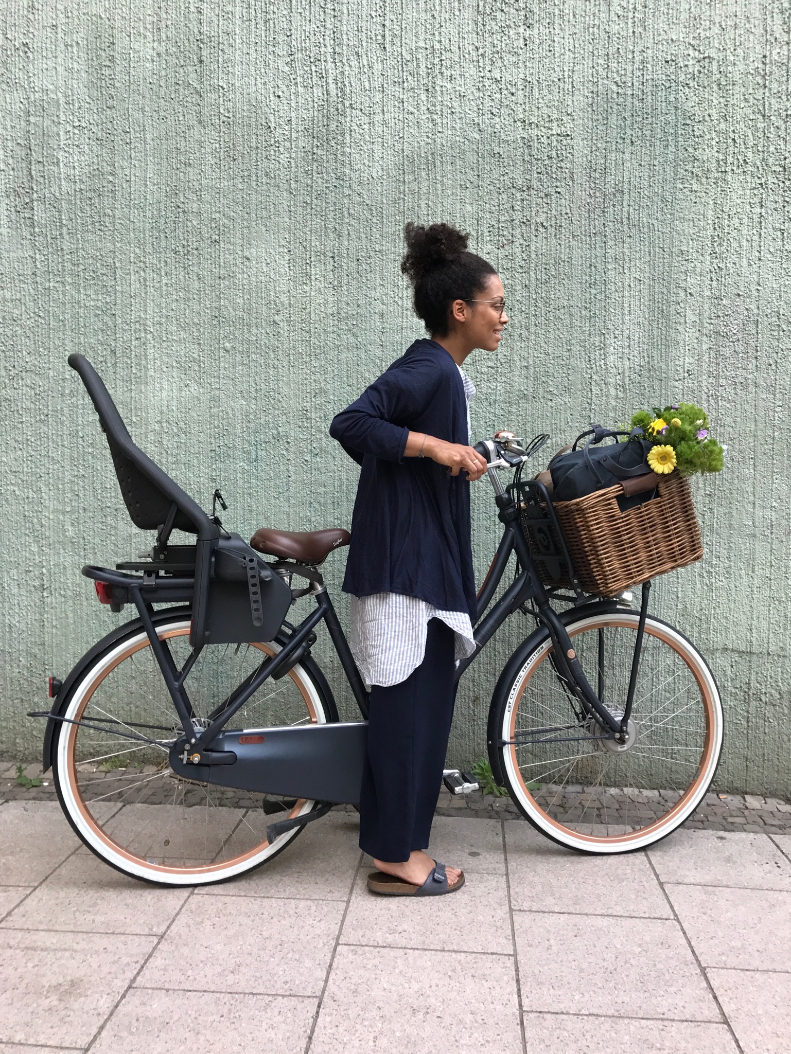 An jedes meiner Fahrräder erinnere ich mich ganz genau. Mein erstes war golden und ich lernte in unserer kleinen Straße (einem Dorf das Bullerbü sehr nahe kommt) das Fahrradfahren. Dann einige Jahre später bekam ich ein Türkises und danach ein lange ersehntes Hollandrad in schwarz… mit diesem Fahrrad bin ich von Niedersachsen nach Bremen und von Bremen nach Berlin gezogen. Es begleitete mich durch mein Studium, meine wilde Zeit in Berlin und meine Tochter durfte auch bis zu ihrem dritten Lebensjahr in Ihrem Fahrradsitz thronend drauf mitfahren.