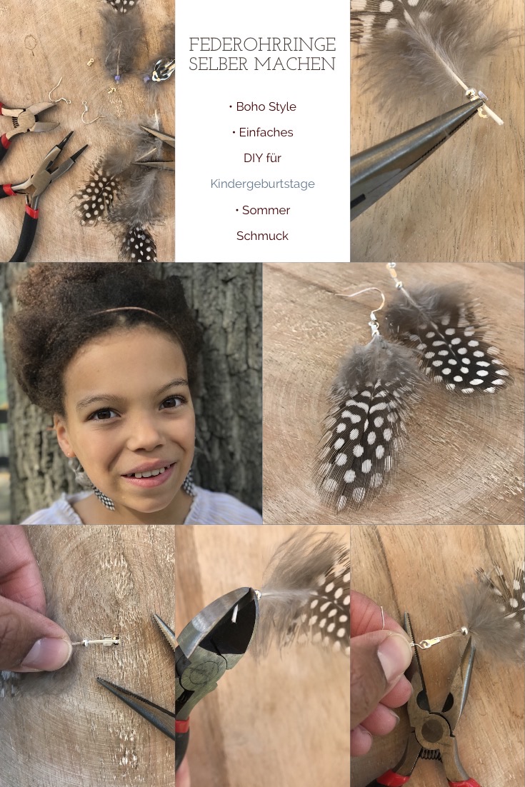 Federohrringe passen nicht nur wunderbar zu unseren Sommerlichen Temperaturen und dem angesagten Boho Style, sie sind auch ein prima DIY für den Kindergeburtstag und ganz gebastelt.
