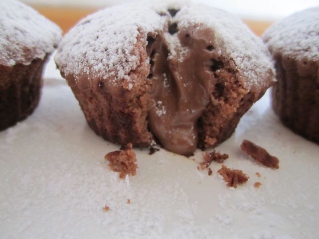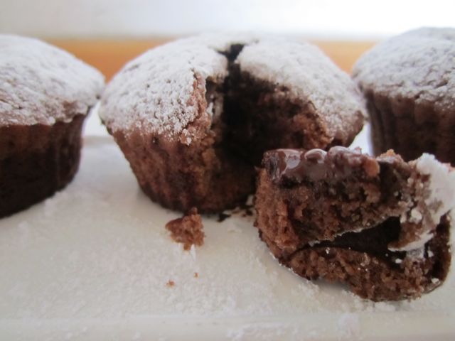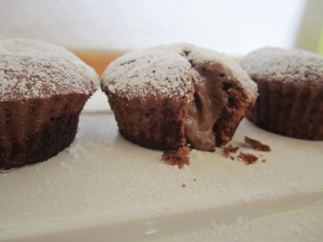 Ich habe in die Mitte der Küchlein noch mal ein halbes extra Stück Schokolade gesteckt, damit sie wunderbar zartschmelzend rauslaufen kann. Oh ihr werdet sie so lieben! Kleiner extra Tip…. wenn ihr das halbe Rezept macht dann kommen etwa 5 Küchlein dabei raus, also sozusagen für den kleinen Hunger zwischendurch;) Ganz lecker dazu ist natürlich Eis und wenn die Kuchen schon ganz kalt sind oder noch welche für den nächsten Tag übriggeblieben sind dann einfach für 20 sec. in die Mikrowelle…