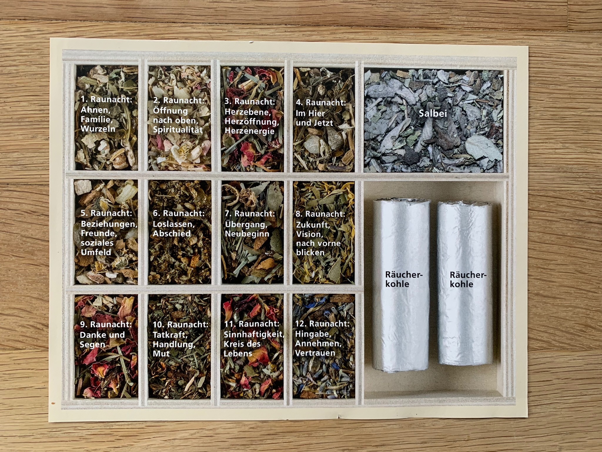 Auch sehr zu empfehlen ist die Rauhnachtkiste von Lab.Danum: 12 Heilige Nächte, jeden Tag eine besondere Mischung