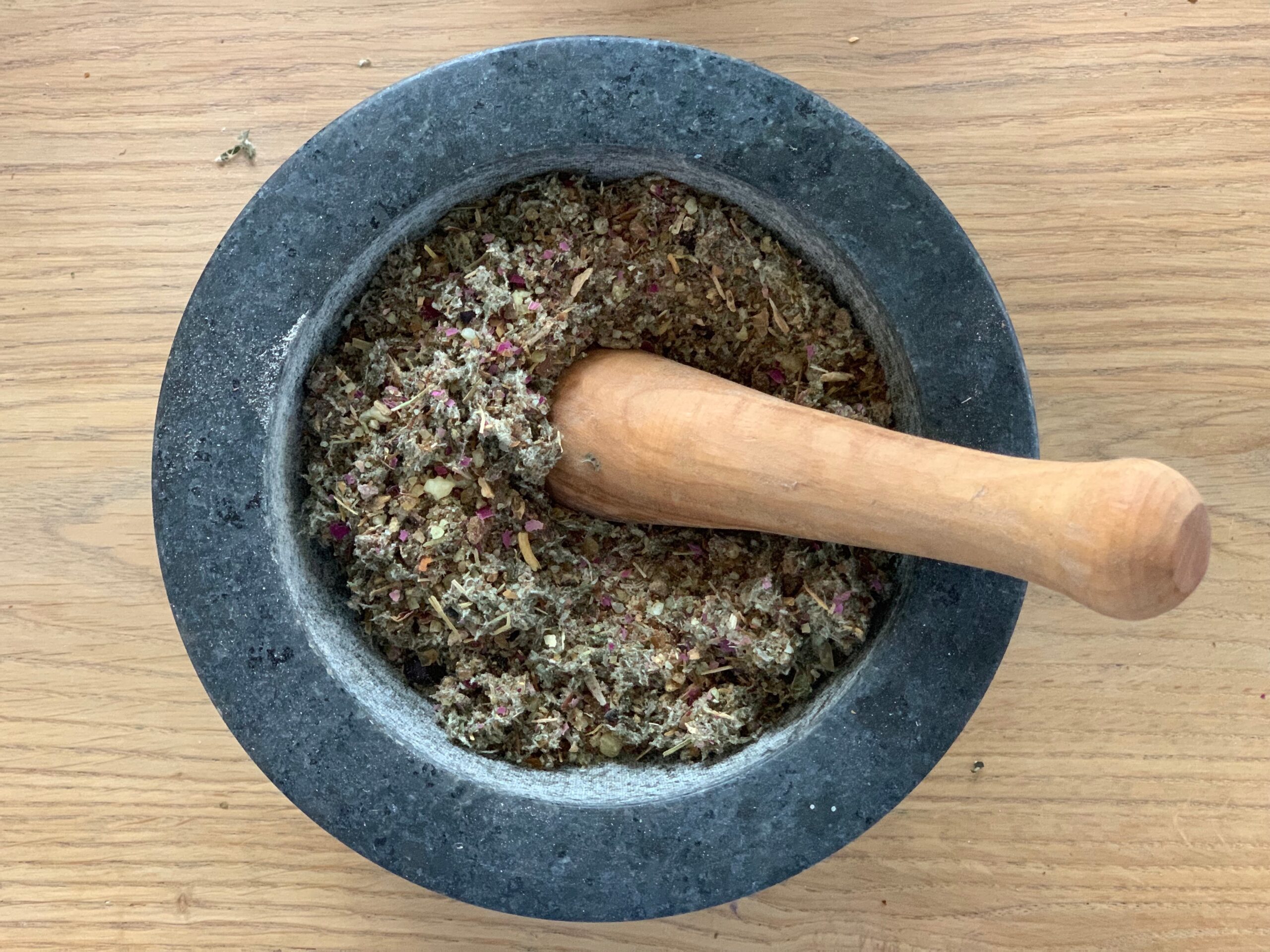 - 50g Mischung „Heilige Nächte“ nach Elfenkind aus dem Kräuterkontor (klick) oder alles selber machen:
