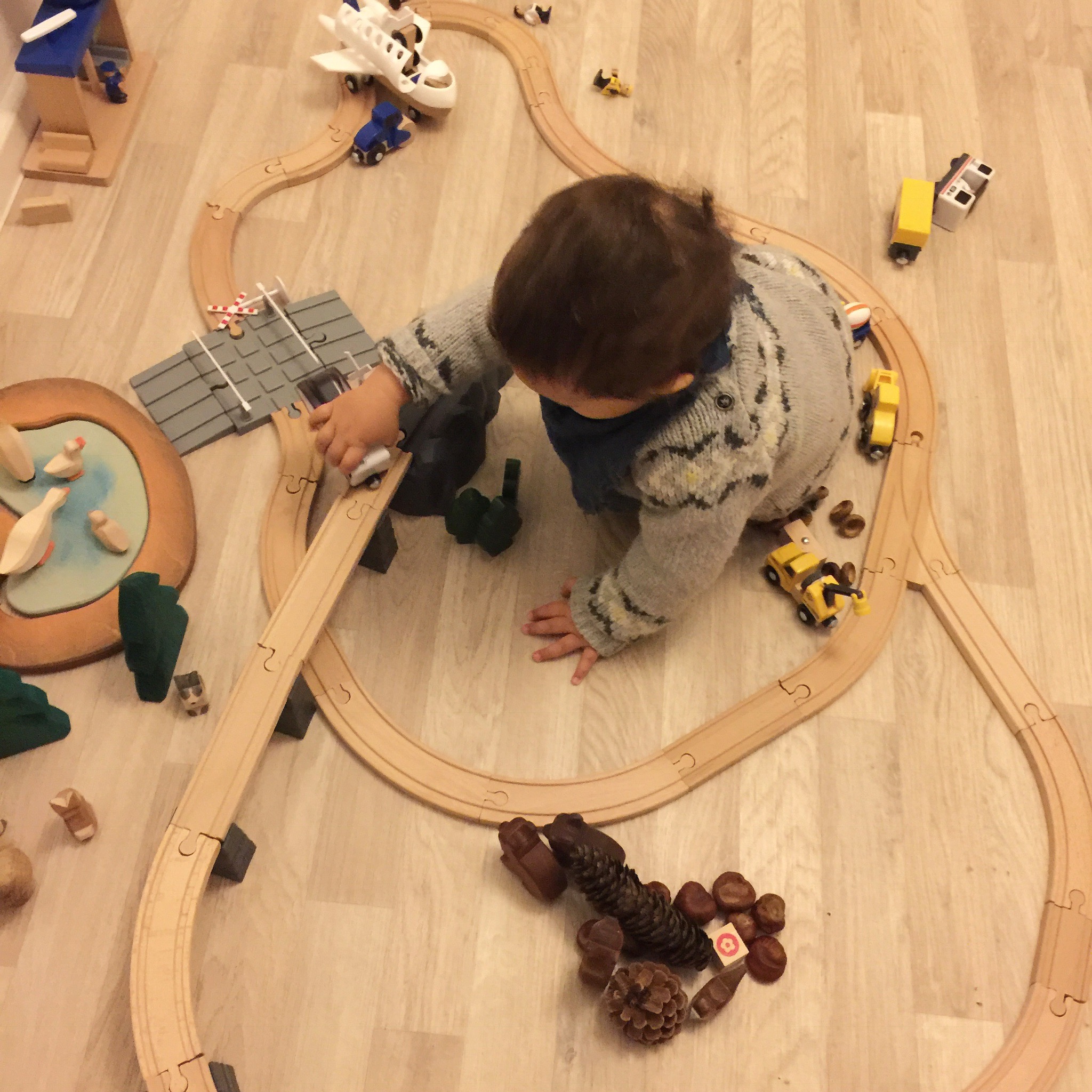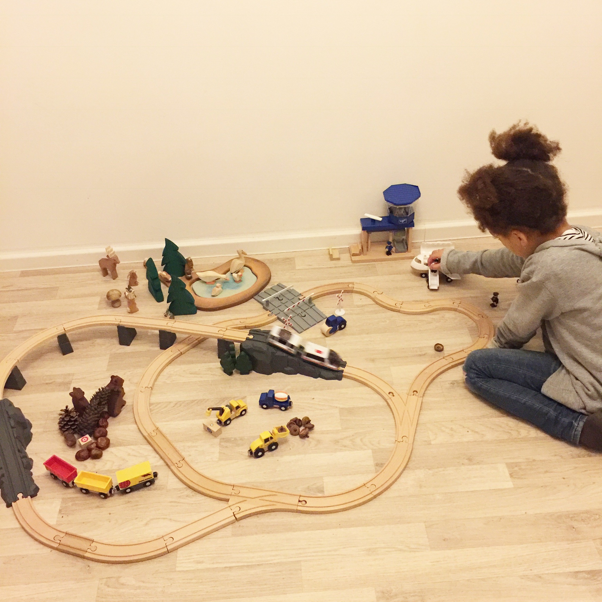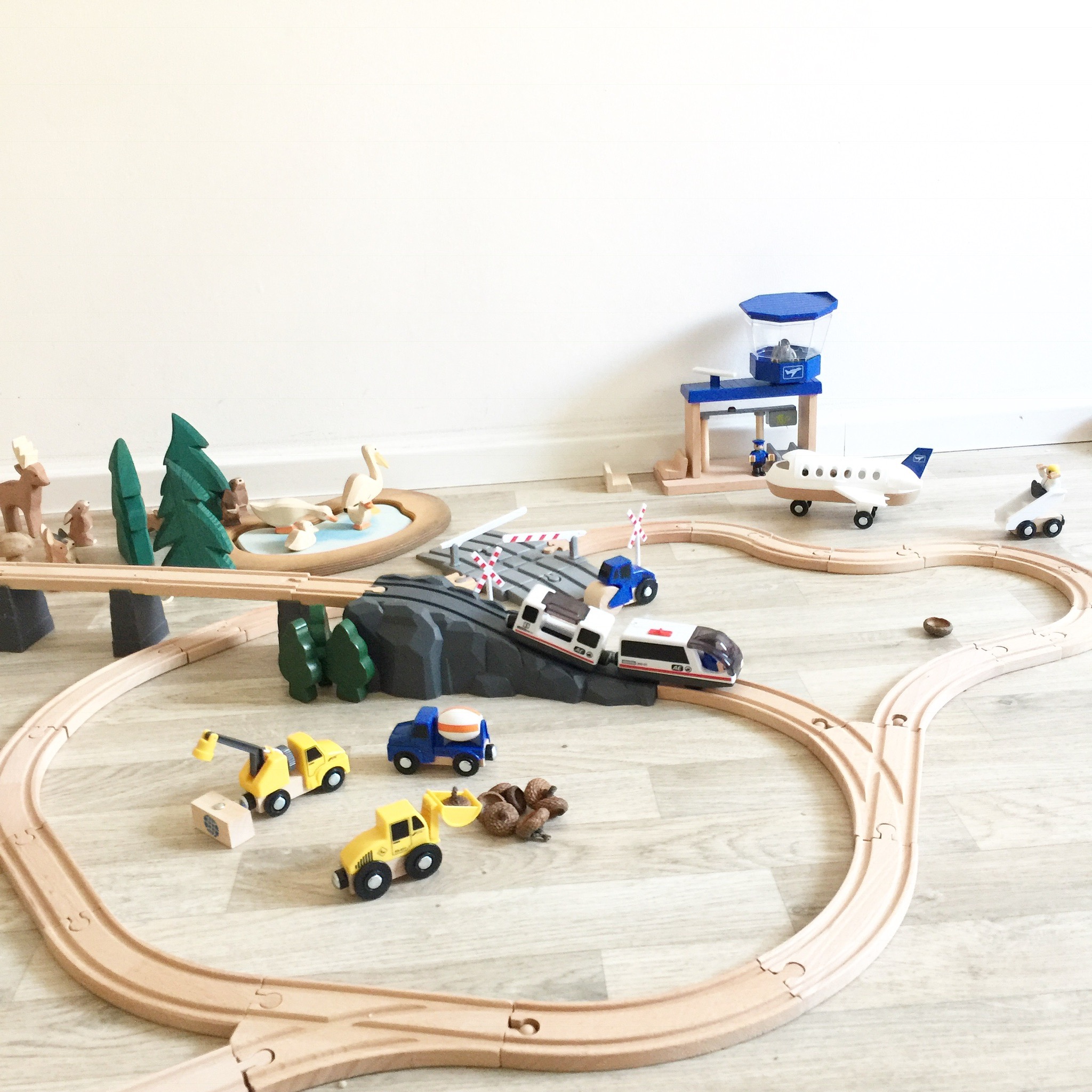 Auch mein Mädchen kombiniert die verschiedenen Sachen und baut außer einem riesigen Schienennetz nach Lust und Laune noch ganze Landschaften mit ihren Holzfiguren, Tüchern, Bauklötzen, etc.