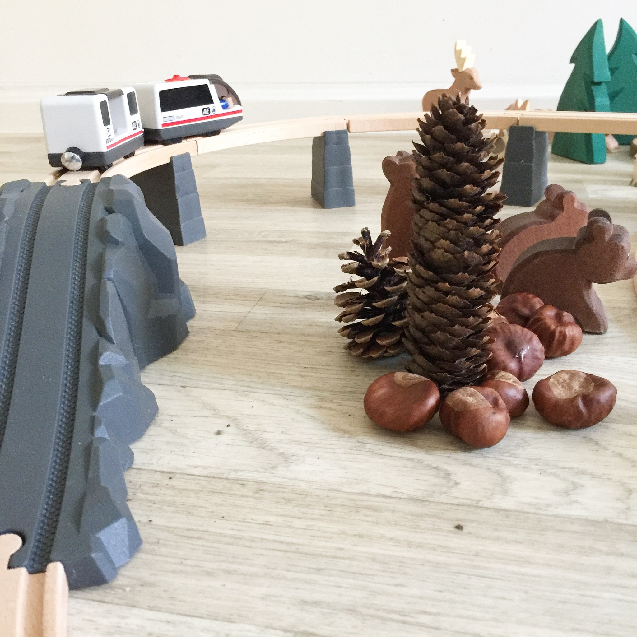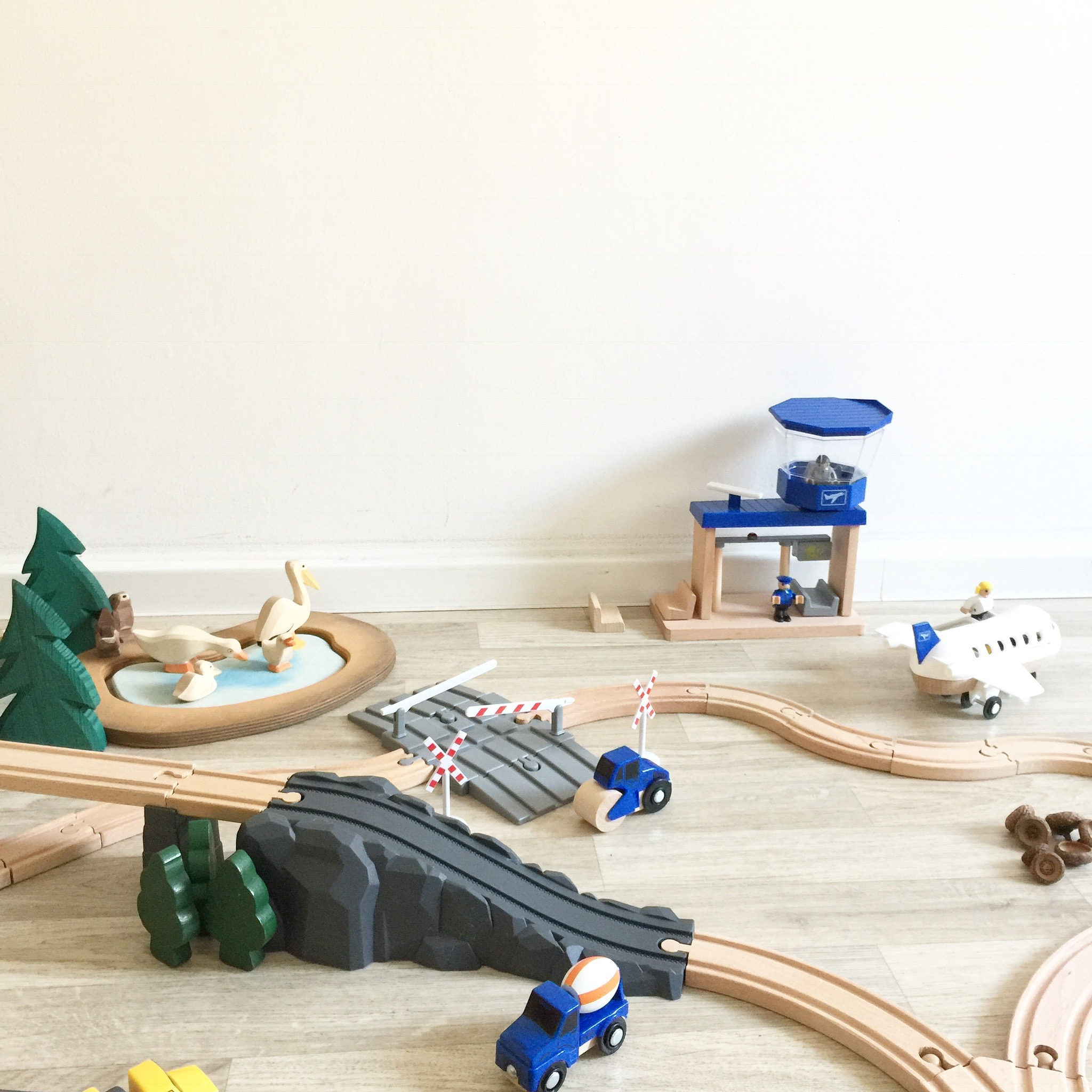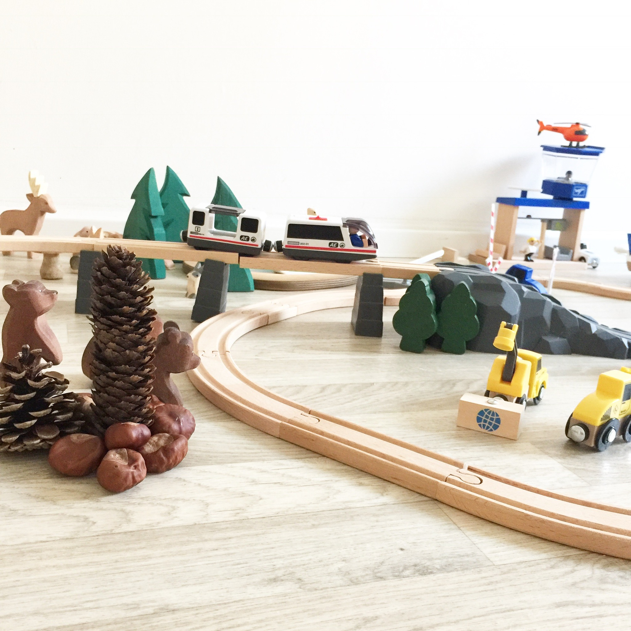 Laéna hat es alles aufgebaut und kombiniert mit unseren Ostheimer Sachen sowie Wald und Wiesen Funden. Ich bin froh da wir nun auch eine so schöne Eisenbahn zu Hause haben und dachte mir ich erzähl es euch mal, denn solltet ihr noch auf der Suche sein ist diese Bahn eine wirklich sehr sehr schöne und kostengünstige Alternative zu den andern handelsüblichen Bahnen. Solltet ihr schon eine Bahn haben, sind zumindest all die Zusatz Accessoires auch eine wunderbare Ergänzung. Die Schienen und Fahrzeuge sind alle kompatibel zu allen handelsüblichen Holzschienen- und Holzstraßensets.