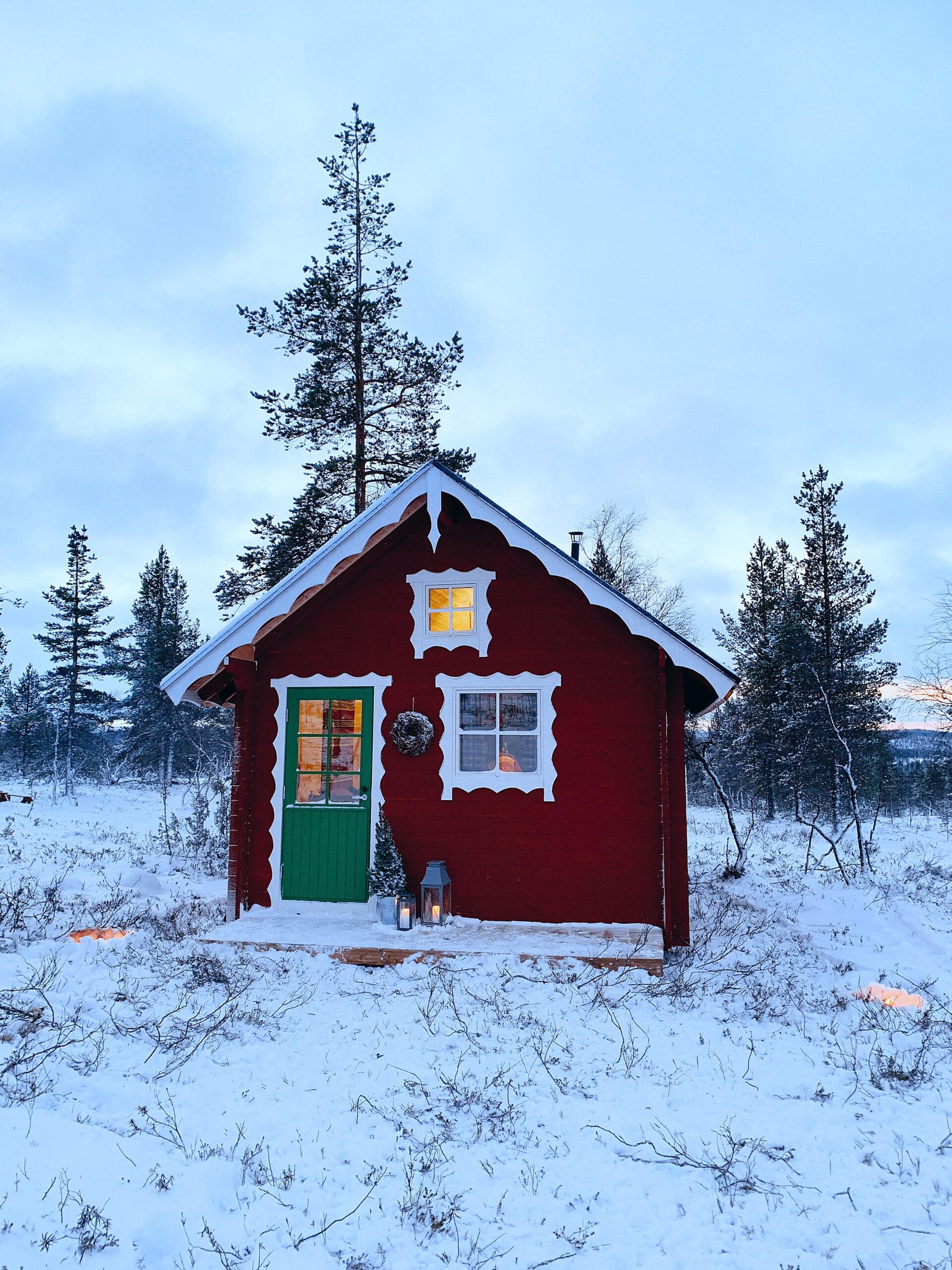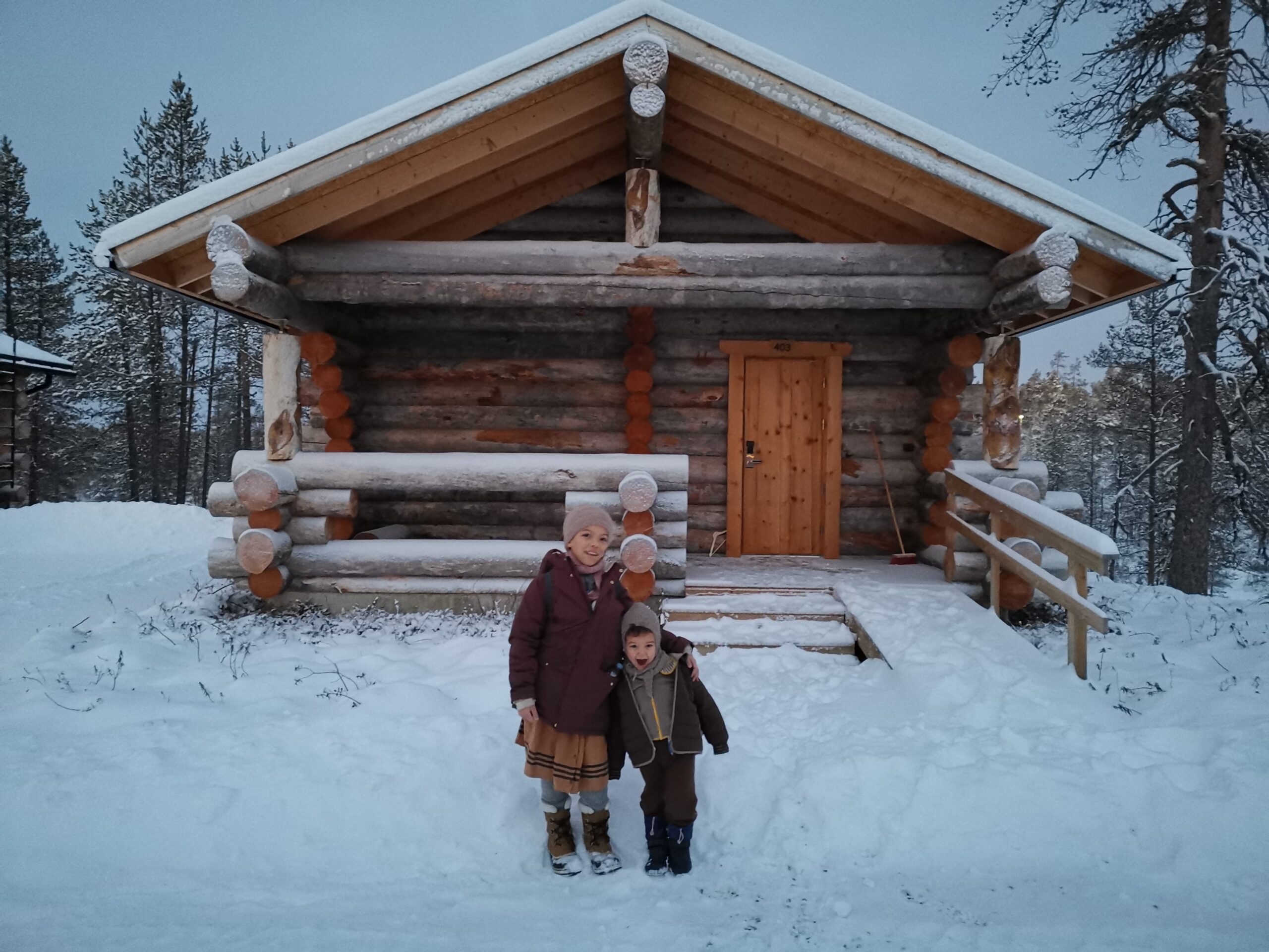 Wir sind von Berlin nach Helsinki geflogen und von dort aus noch mal etwa eine Stunde mit dem Bus nach Ivalo gefahren. Dort erwartete uns nicht nur traumhafte Natur, sondern auch das schönste Naturhotel, das ich je gesehen habe. Es bestand aus einzelnen Holzhütten mitten im Wald. Durch die großen Glasfronten und Glasdächer hatten wir die Möglichkeit, der Natur und dem Schneetreiben ganz nah zu sein.Wir waren übrigens im Wilderness Hotel Muotka