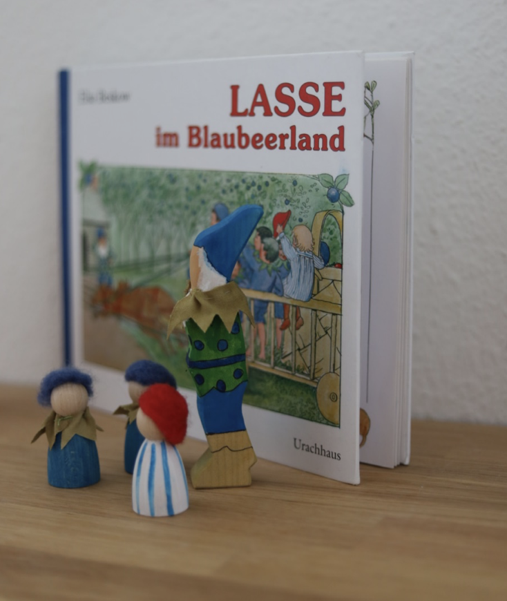 Kennt ihr die Geschichte von „Lasse im Blaubeerland“ von Elsa Beskow aus dem Urachhaus Verlag? Wenn nicht, dann müsst ihr sie kennenlernen. Es ist eines unserer liebsten Bücher im Sommer. Immer, wenn ich es meinen Kindern vorlese, naschen sie nebenher ein Schälchen Blaubeeren und lauschen. Langsam kommt die Zeit, in der man diese blauen Beerlein auch wieder im eigenen Garten ernten kann. Und meine Kinder haben mich gefragt, ob ich ihnen nicht den Blaubeerenfürst, seine Blaubeerenkinder, Lasse, die Preiselbeermutter und ihre Mädchen zum Spielen machen könnte. Wie könnte ich da nein sagen. Und da sie uns so gefallen haben, haben Rebecca und ich gedacht, wir könnten ein kleines DIY für euch dazu machen. So dass eure Kinder danach ganz im Blaubeerland verschwinden können und ihre Mägen passend dazu gefüllt sind.