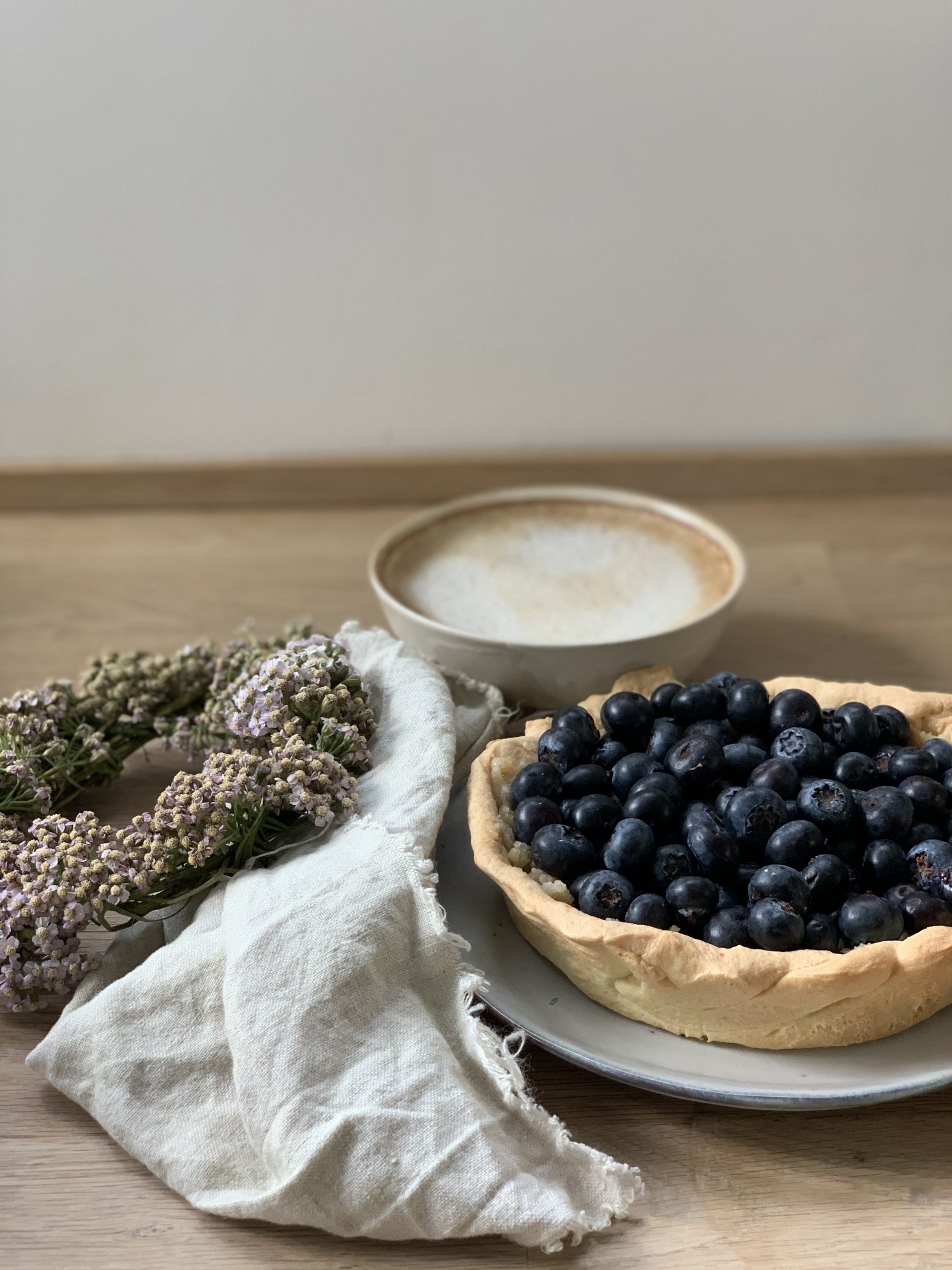 Mehl, Zucker und Vanille verrühren.Die Butter hinzugeben und mit einem Handrührgerät zu einem Teig kneten. Den Teig auf einer bemehlten Arbeitsfläche ausrollen und in eine Quiche- und Tarteform geben. Den Teig mit einer Gabel einstechen und für 20 Minuten im vorgeiztem Ofen auf 180°C Ober-/Unterhitze backen lassen. Während der Kuchen im Ofen ist kann die Füllung hergestellt werden, die MAndelcreme herstellen und auf den abegkühlten Boden geben, nun einfach die Blaubeeren darüber geben, Fertig !