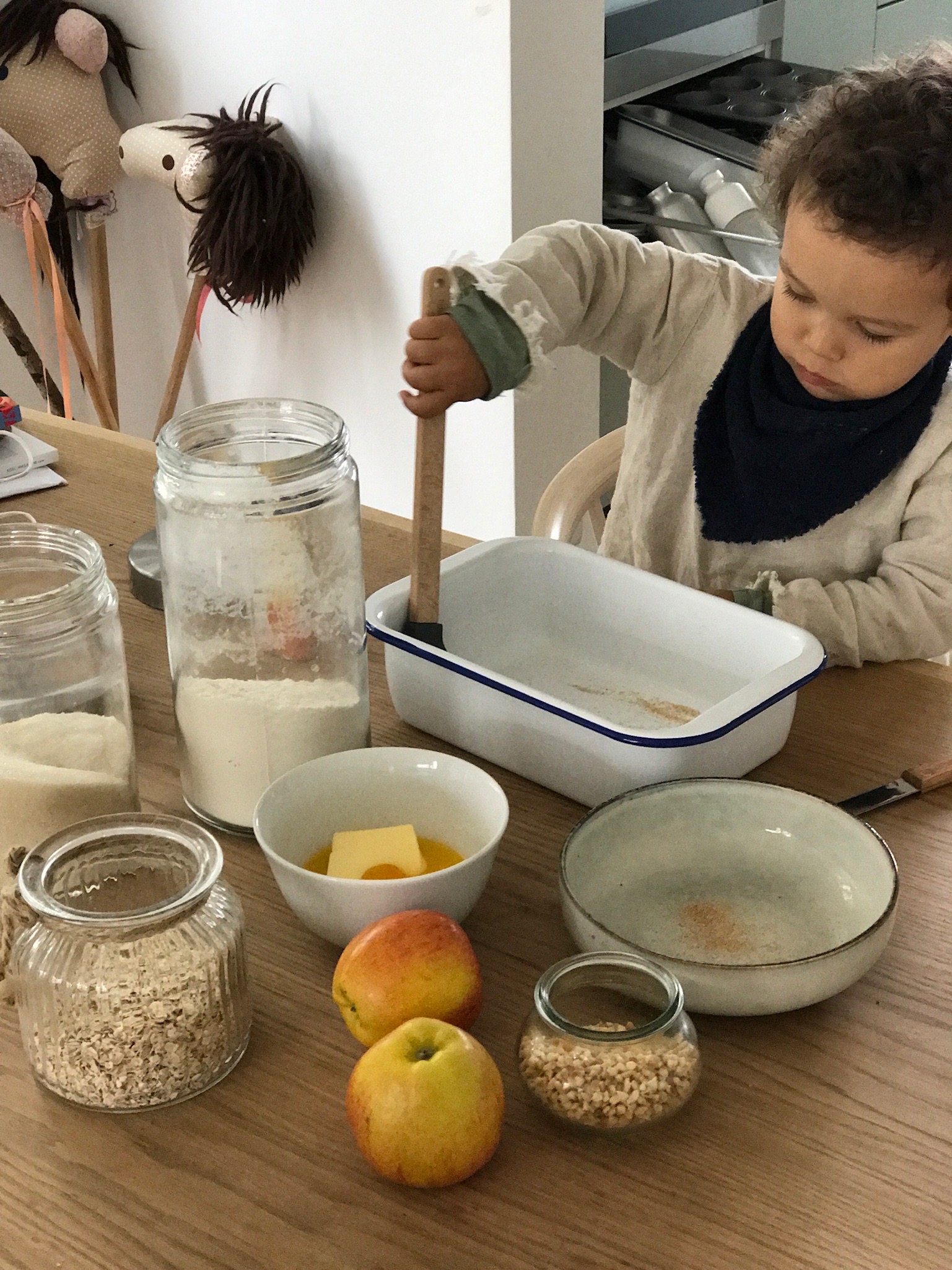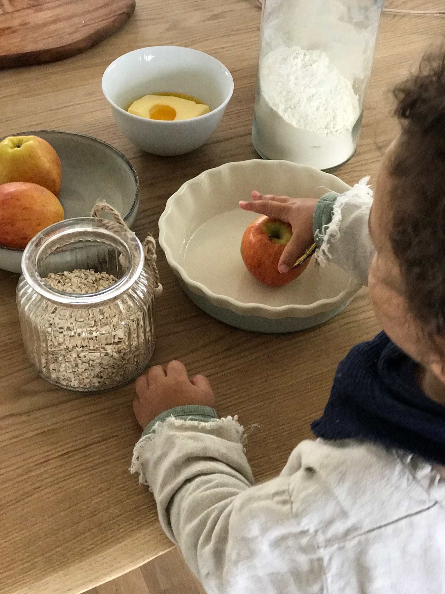 ich melde mich mal etwas verspätet mit einem Rezept in dieser Woche aber dafür ist es perfekt fürs Wochenende! Ein Leckeres Apfel-Crumble Rezept ! Apfel Gekrümmel oder auch Apfel-Crumble ist das wohl feinste Gekrümmel das ich kenne! Eine kleine Sünde, die sich köstlich duftend im Haus verteilt und seine Ankunft ankündigt! Ein leckeres Dessert oder auch ein schöner Nachmittagskuchen an verregneten Herbsttagen. Es ist so leicht zu machen das meine Kinder es auch schon ganz alleine hinbekommen würden. Ich habe Nael nämlich auch gerade angelernt, und sein Apfel-Crumble war himmlisch lecker! Hier kommt das Rezept für einen kleinen Apfel-Crumble (kann natürlich einfach in einer größeren Menge hergestellt werden)