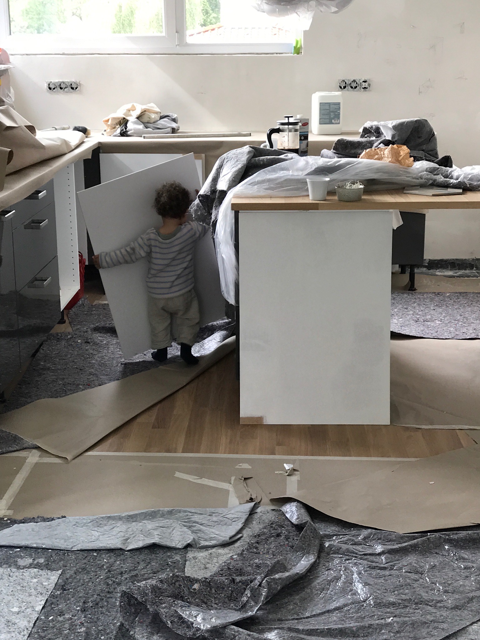 Nael und ich haben den ganzen Freitag im neuen Haus verbracht und rumgeräumt aufgeräumt, Farben für unsere Küchen Fronten gestrichen und ausgesucht.Sind dem Gewitter gerade noch trocken entkommen, und sind alle tage sehr spät ins Bett gegangen. Den kompletten Samstag haben wir Umzugs Kisten gepackt stetig und ausdauernd…wir waren so vertieft das wir tatsächlich erst um 22:00 ein gemeinsamen Abendessen hatten und dann zusammen ins Bett gefallen sind. Am Sonntag kam meine jüngste Schwester mit ihrer Freundin zum Frühstück vorbei, die beiden Engel haben dann nicht nur mit uns gefrühstückt sondern haben auch einmal die Wohnung durchgesaugt, die Spühlmaschine ein und ausgeräumt ,Nael angezogen und sind dann noch mit ihm spazieren gegangen. Das nenne ich mal Hilfe ! Ich habe heute tatsächlich echt viel geschafft! Aber sollten wir noch mal umziehen ist so viel schon mal klar, dann lasse ich auch ein und auspacken… es nimmt hier einfach kein Ende! aber wahrscheinlich auch bedingt durch mein Atelier. Nael wurde mir schlafend wieder ins Haus getragen und nachdem er er wirklich lange geschlafen hat, sind wir Eis essen gegangen und haben unsere Camper gewartet.
