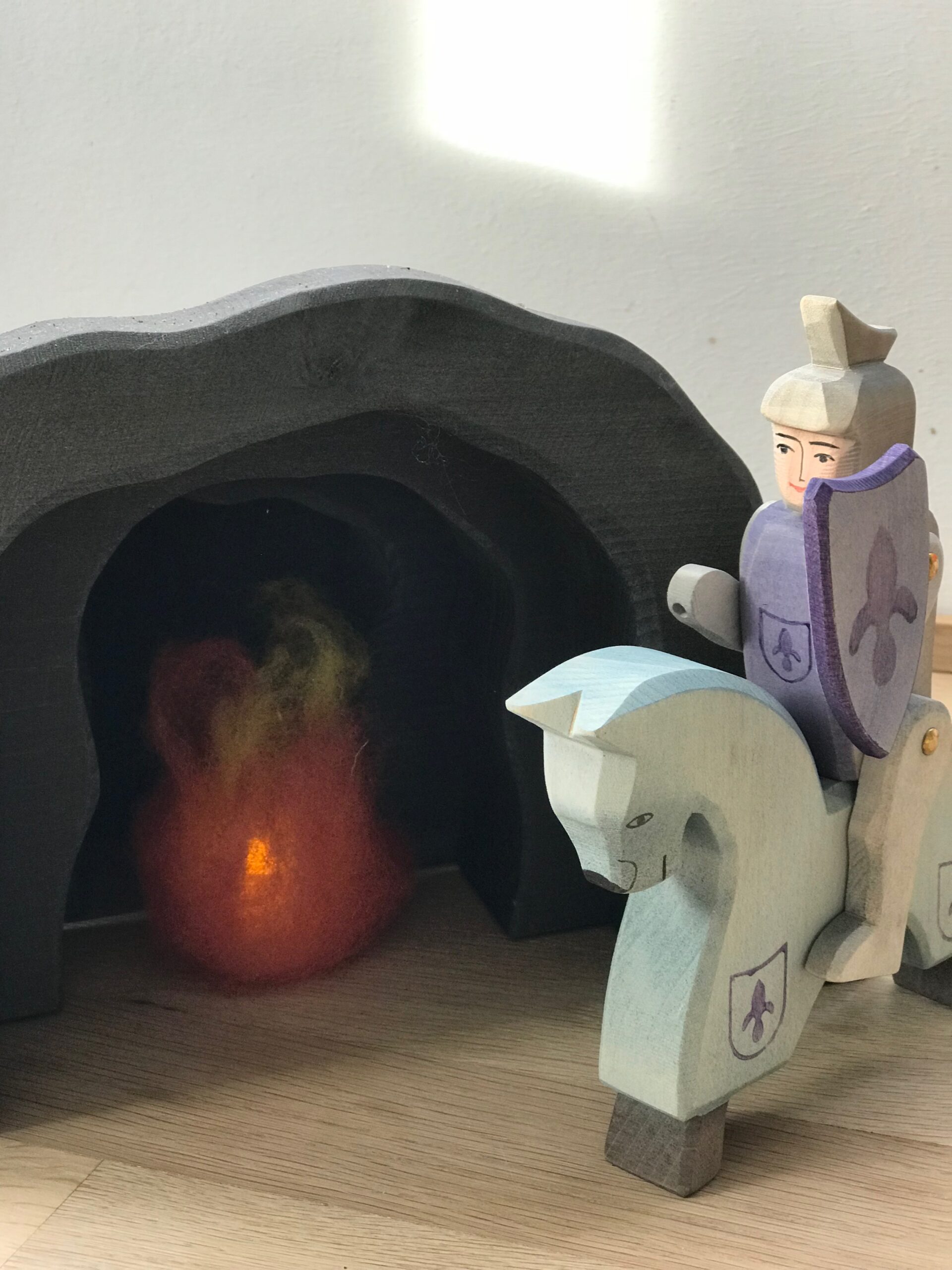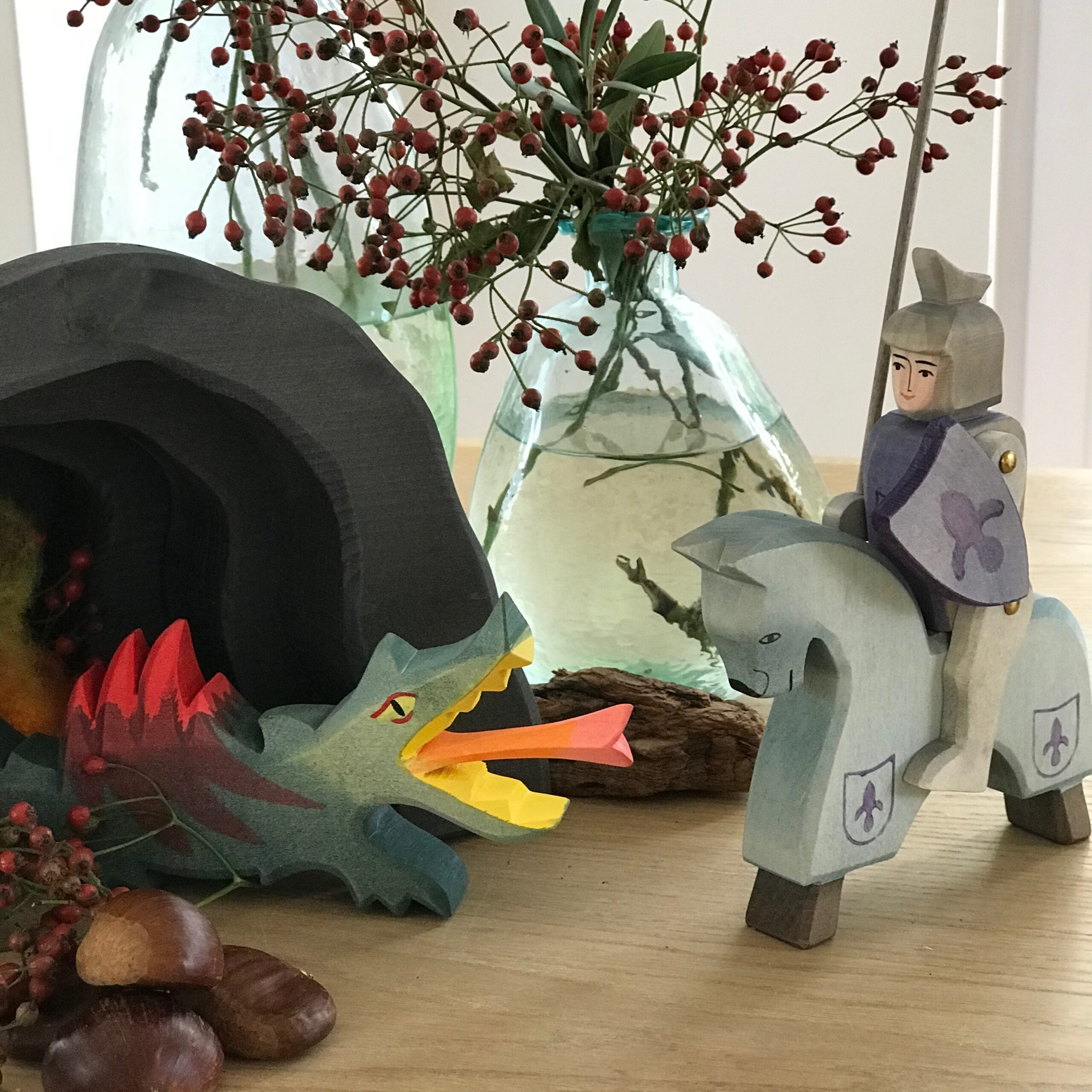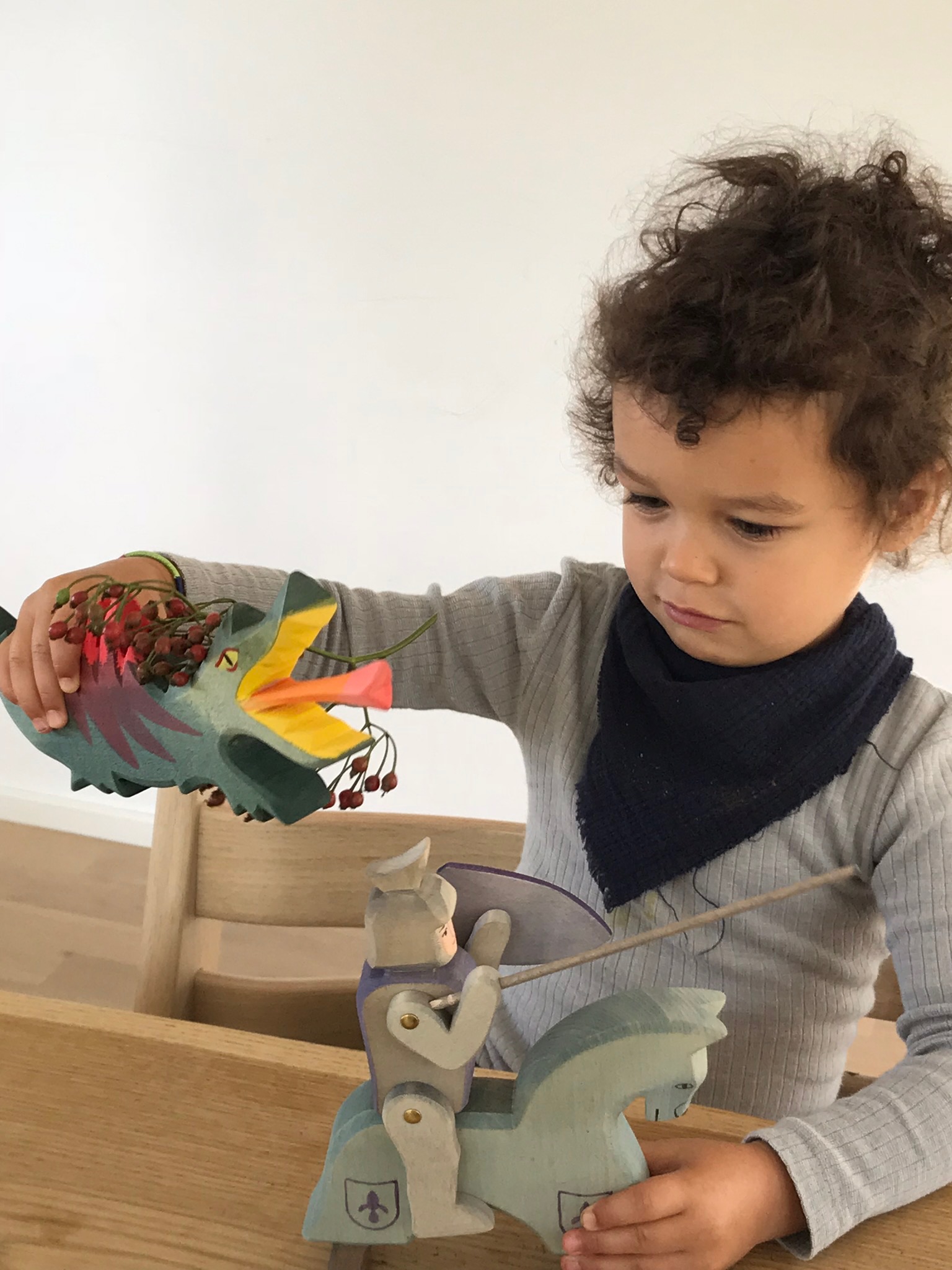 - Wir bauen immer auf unserem Tisch die Geschichte vom Ritter und den Drachen auf ; an Michaeli kommt dann der Erzengel Michel dazu, um noch mehr Kraft zu schenken. Die Kinder spielen dann schon in den Tagen vorher mit den schönen Ostheimer Figuren und verinnerlichen die Geschichte.