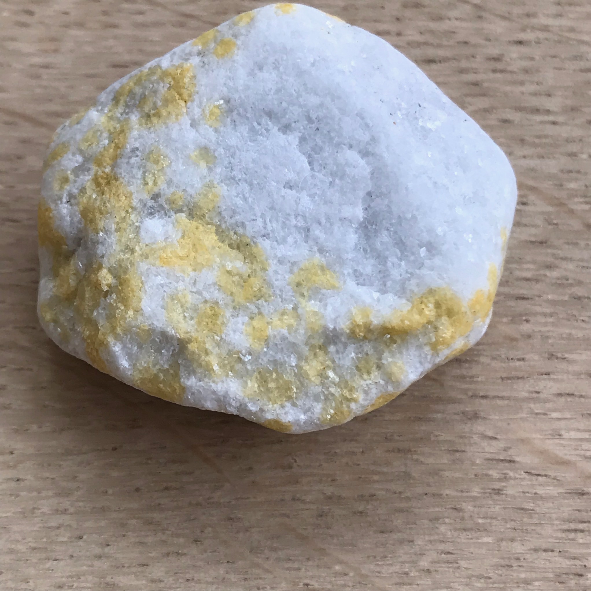 - Der Mutstein kann ganz einfach mit Aquarellfarbe bemalt werden, ich habe weiße glitzernde Marmorsteine aus dem Garten unseres Nachbarn mit einem feinen gelben Muster bemalt, so haben unsere Kinder immer die Sonne in der Hosentasche.