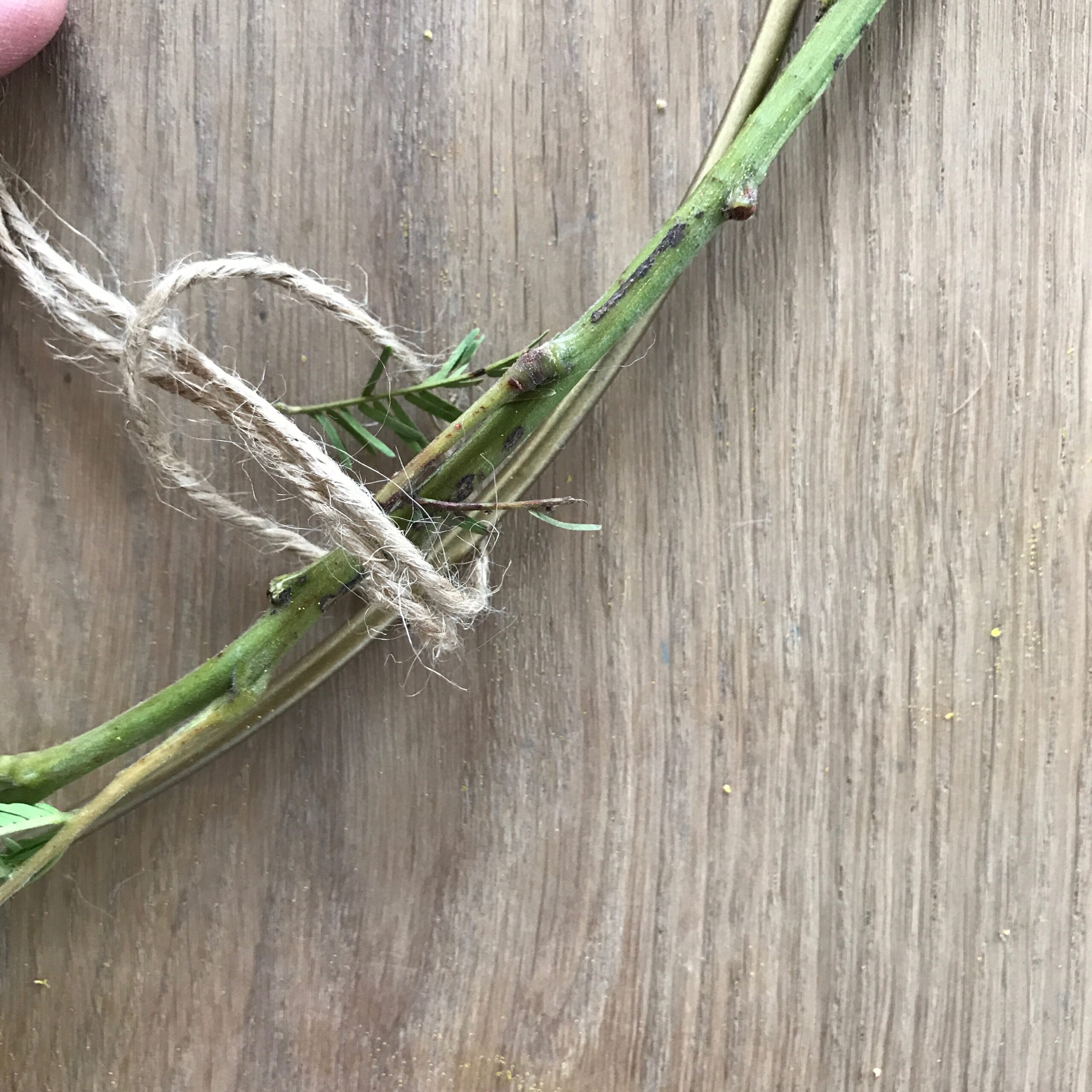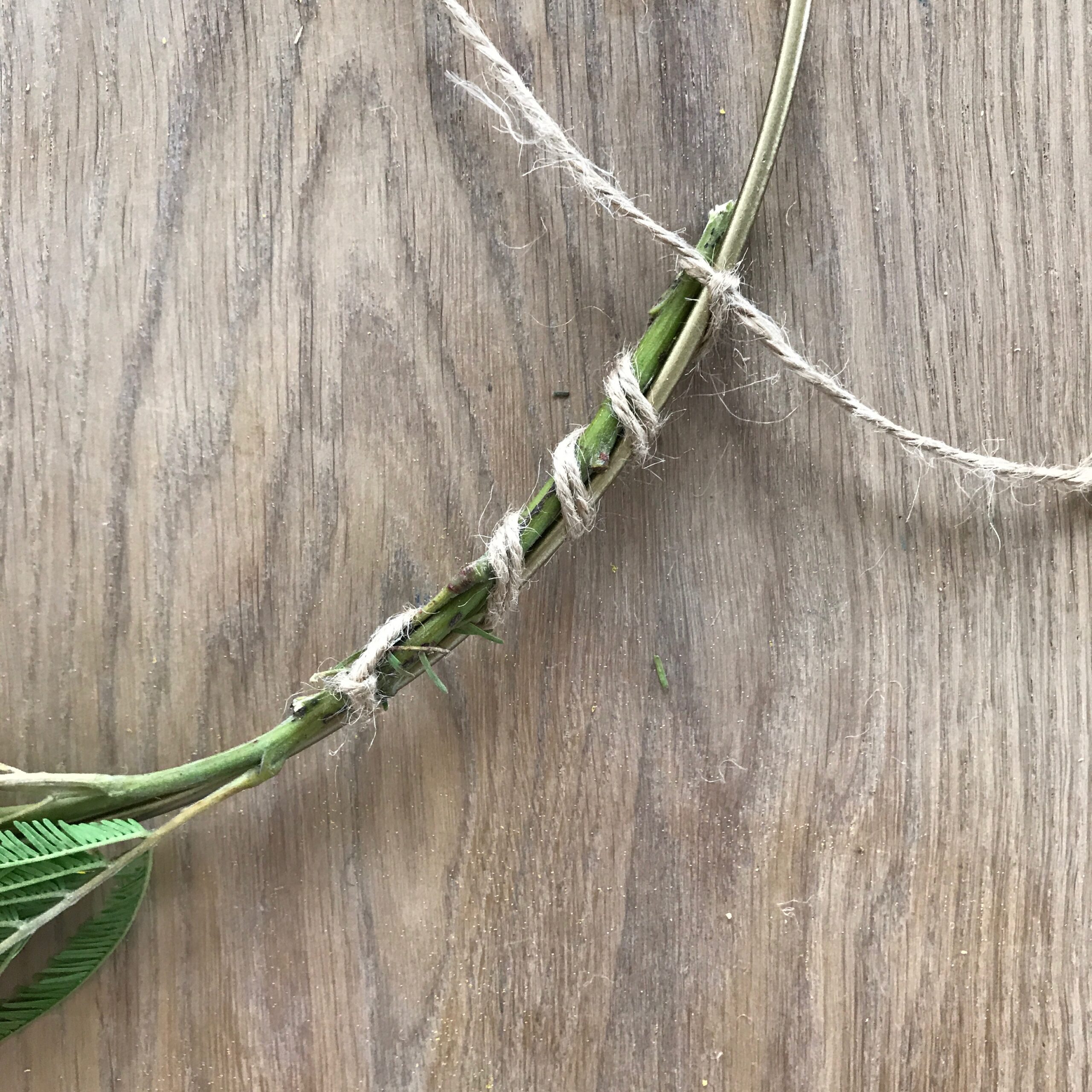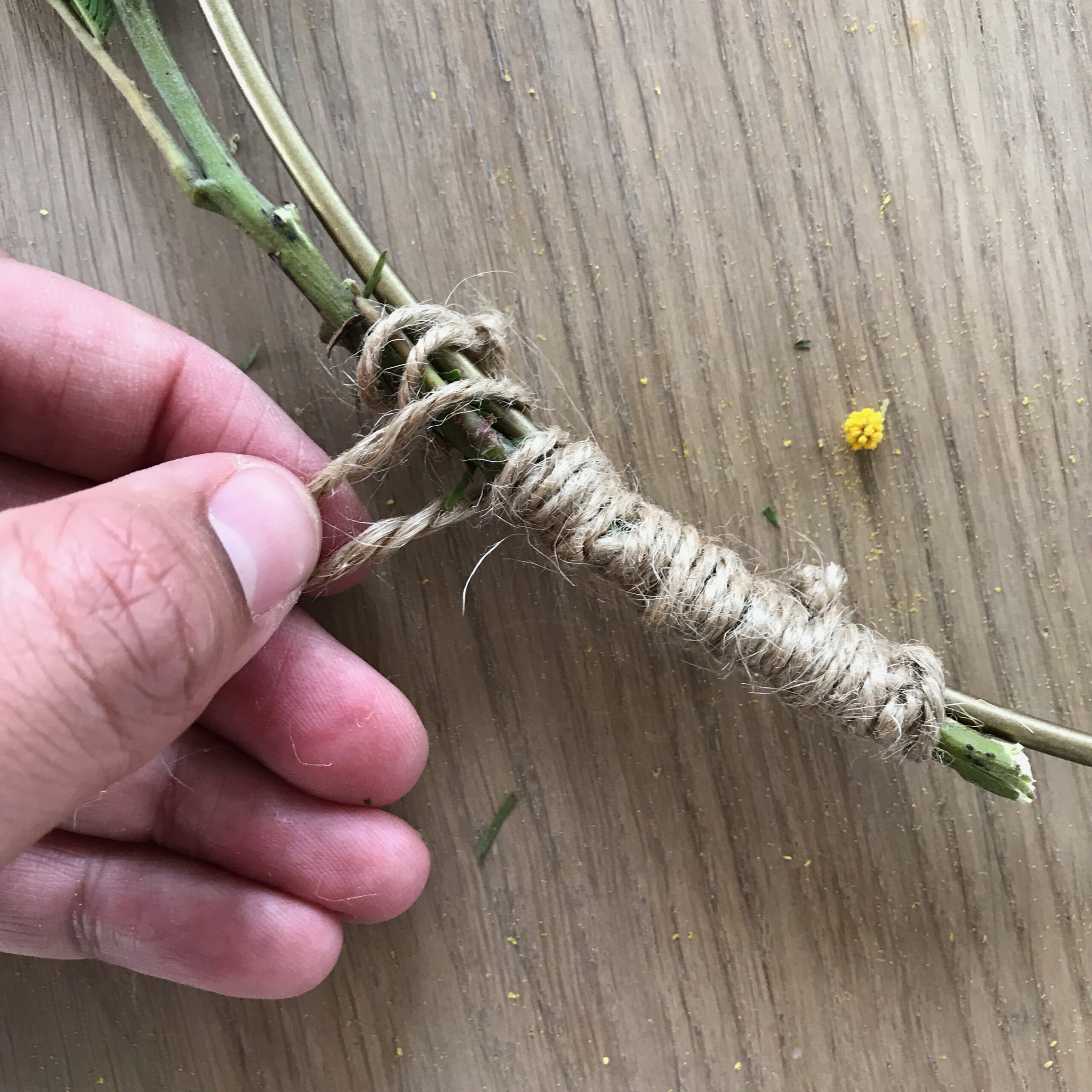 - Die Enden mit der Juteschnur umwickeln und zusammenbinden