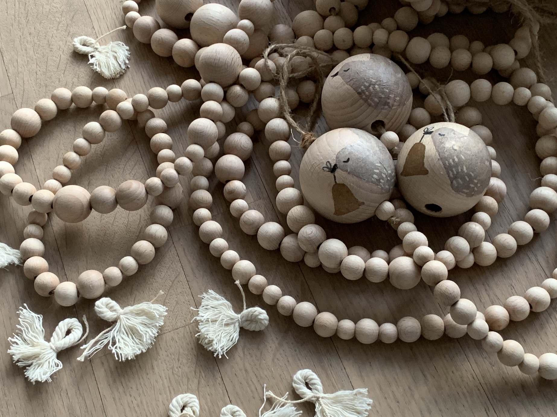 Nachhaltiger Weihnachtsschmuck-Girlande aus Holzkugeln