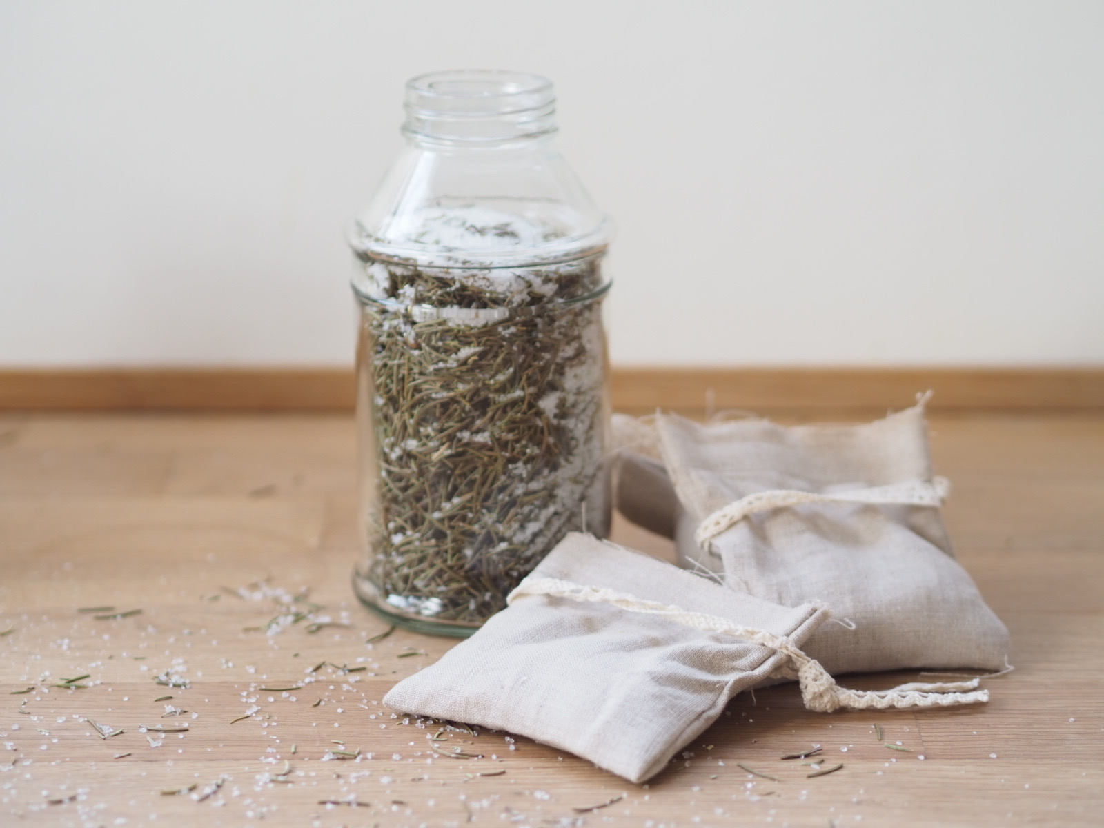 Hier gibt es eine Anleitung für ein schönes Badekissen, gefüllt mit Tannennadeln