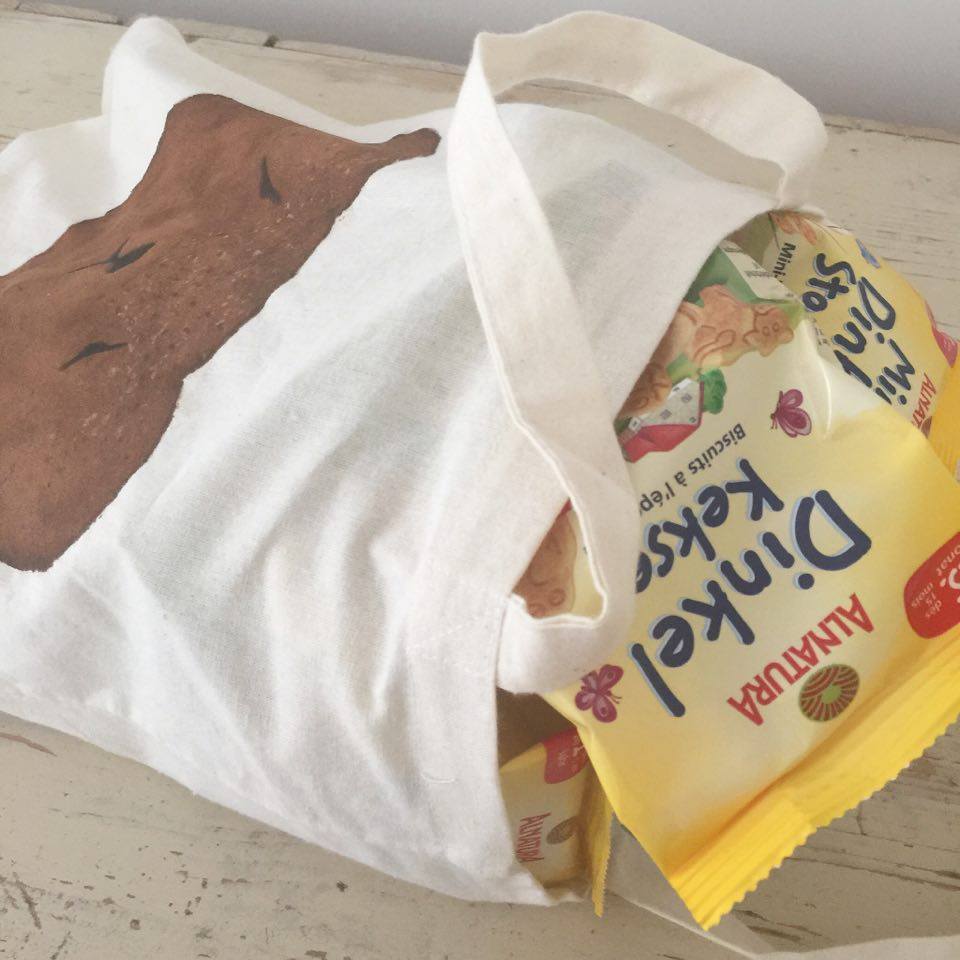 Schaut mal, wie findet ihr unseren neuen DIY Beutel für all die Kinder Snacks, die wir so tagtäglich mit uns herumschleppen? Wir fliegen in einigen Tagen nach Österreich (zum Heiraten! Oh ich kann es kaum glauben) und für die Reise bzw. auch für die Woche, die wir dort hoch oben auf der Alm sein werden, sind all die Alnatura Snacks, die letzte Woche ankamen, genau richtig! Ich habe nun ein kleines Beutelchen gemacht, in dem eine bunte Auswahl an Keksen Brezeln & Co. Platz findet. Wollt ihr noch eine genaue Anleitung haben, wie man den Bären auf den Beutel bekommt? Dann schaut einfach mal hier *Bären Tasche Anleitung*
