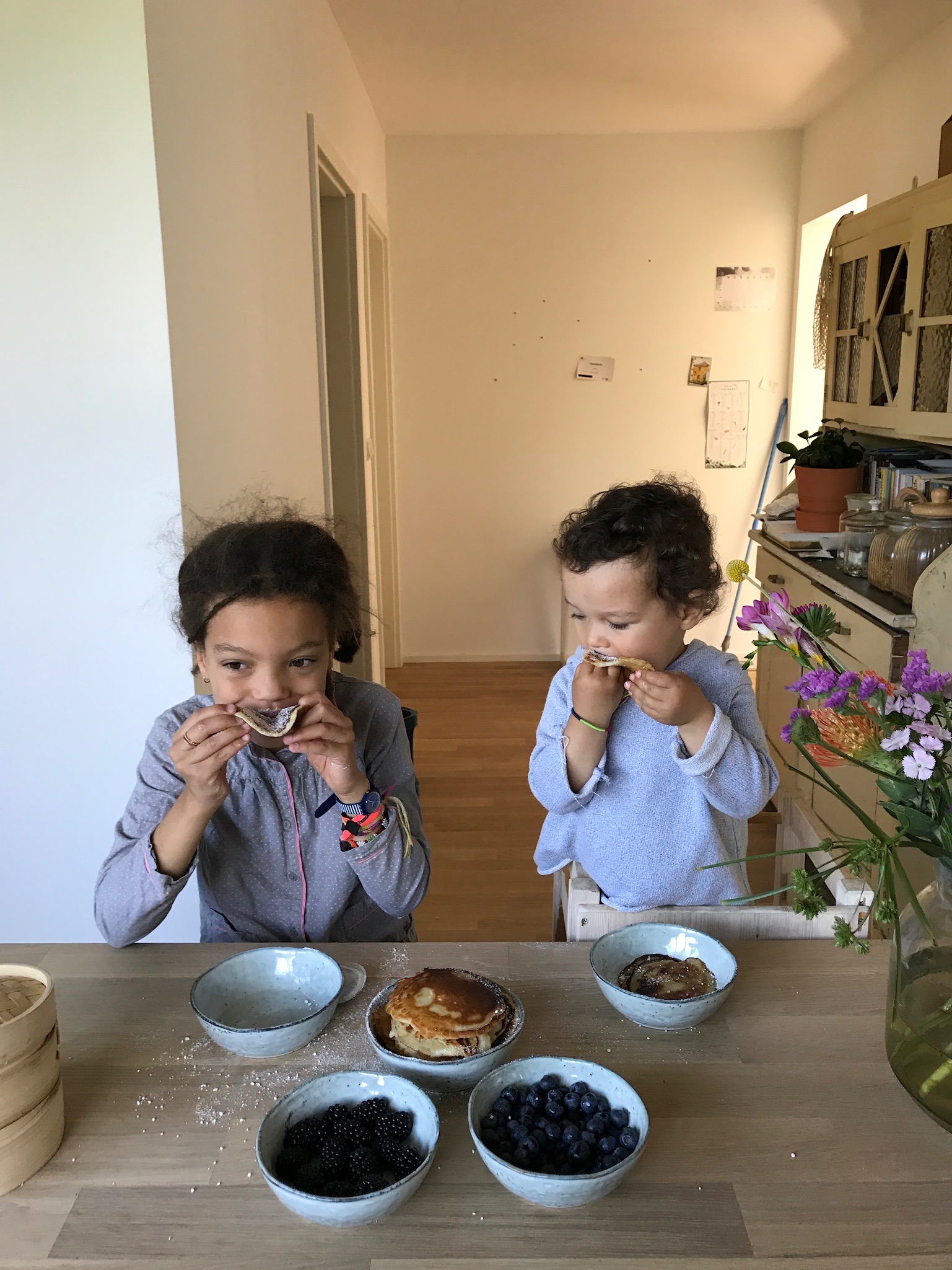 Hier mal eben schnell für euch, denn sie sind so schön schnell und einfach gemacht und super lecker! Pancakes, schnell , einfach , lecker ! Es geht mit natürlich auch Glutenfrei mit dem richtigen Mehl ( ich mag die Mehlmischung von Rewe ) oder aber mit ganz normalem Mehl! Doch diese Pfannkuchen sind vor allem ohne Eier! Es sind super fluffige kleine Pfannkuchen, eure Kinder werden sie lieben!
