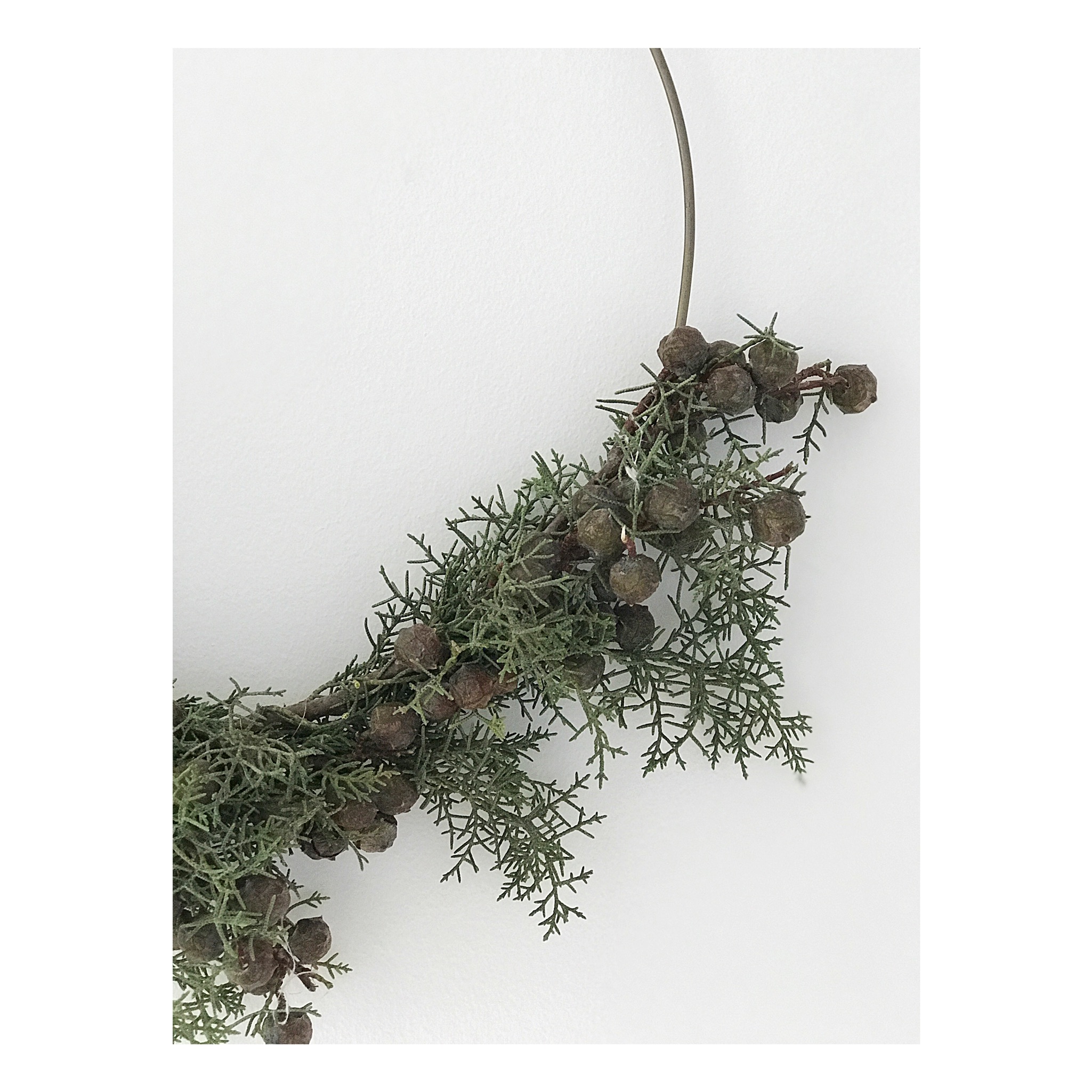 Der Trend Eukalyptus ist allegegenwertig ! Aber wisst ihr, es muss nicht immer Eukalyptus sein. Auch wenn es schon jahrelang meine allerliebste Grünpflanze ist, und ich sie nach wie vor sehr gerne ansehe, muss ich sagen, dass ich sie in letzter Zeit eine Spur zu häufig gesehen habe. Von daher hatte ich mal Lust auf etwas anderes. Mein Herz wird immer für Eukalyptuskränze schlagen, aber ich möchte euch heute und morgen einige Alternativen zeigen, die auch sehr schön sind. Gerade zu Weihnachten können ganz klassische grüne Tannen, anders in Szene gesetzt, ganz wunderbar schlicht und bezaubernd aussehen, wie ich finde.Eine schöne neue Entdeckung sind auch Eukalyptusbeeren!(Foto oben)