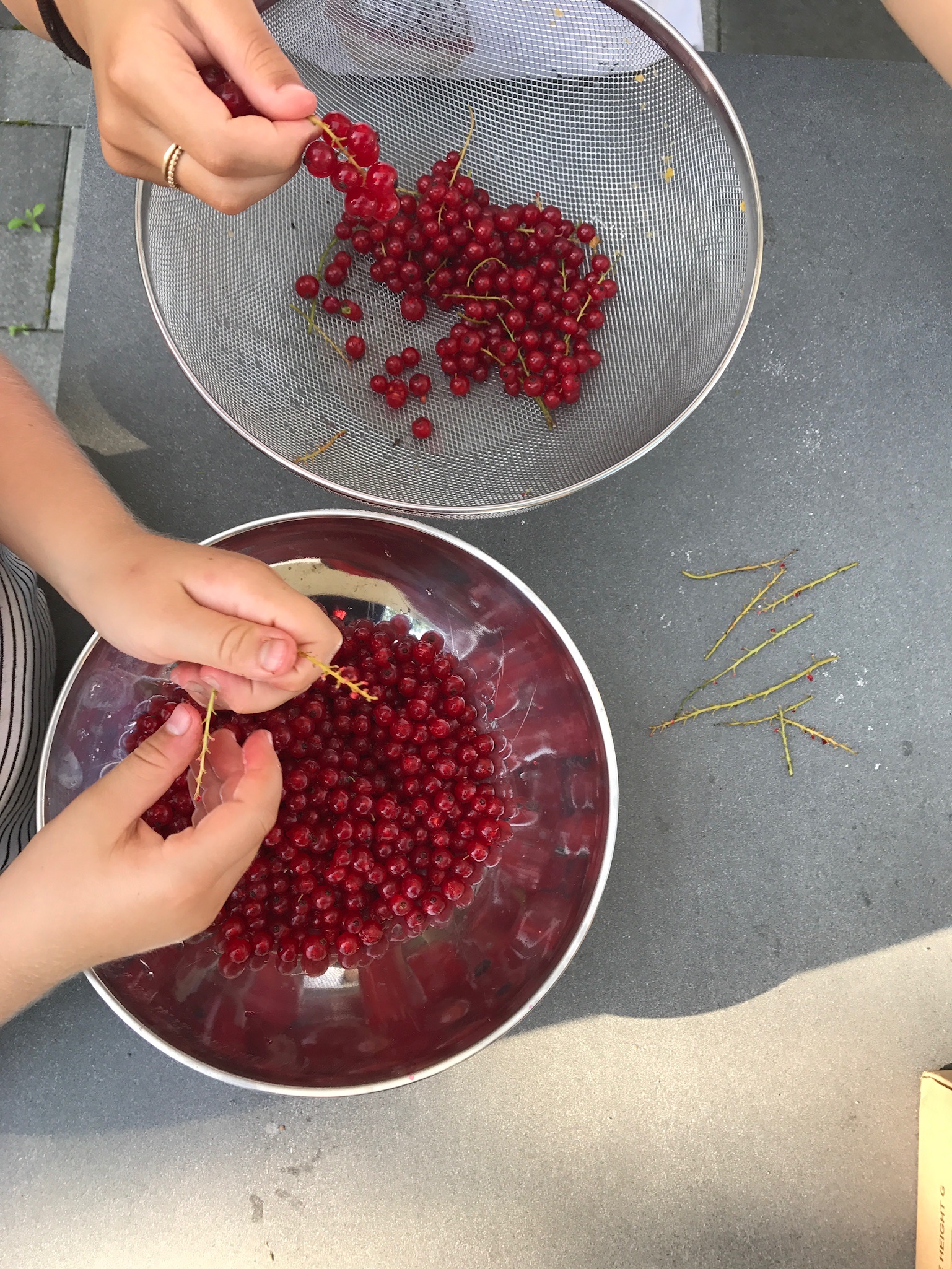 ich werde in unserem neuen Garten ganz sicher eines machen und das ist Beeren pflanzen! Himbeeren zum sofort naschen aber auch Johannisbeeren. Selbstgemachte Johannisbeermarmelade ist einfach köstlich, ich habe das Gefühl sie ist etwas aus der Mode gekommen und ich habe sie auch erst wieder neu entdeckt! Auch eine Linzertorte schmeckt mit selbstgemachter Marmelade einfach noch einen ticken besser finde ich! Aber auch Pfannkuchen und all die feinen Leckereien machen sich sehr gut damit. Und es geht so schnell! Ich nehme den Gelierzucker aus dem Dm oder Bioladen und im nu ist die Marmelade eingekocht. Das pflücken der Beeren dauert zwar ein Weilchen, aber ich mag es so für einen kurzen Augenblick draußen zu sein und zur Ruhe zu kommen.Udb auch für Kinder ist es eine wunderbare Art des Zeit verbringens, wenn sie die Johannisbeeren von den Stilen entfernen.