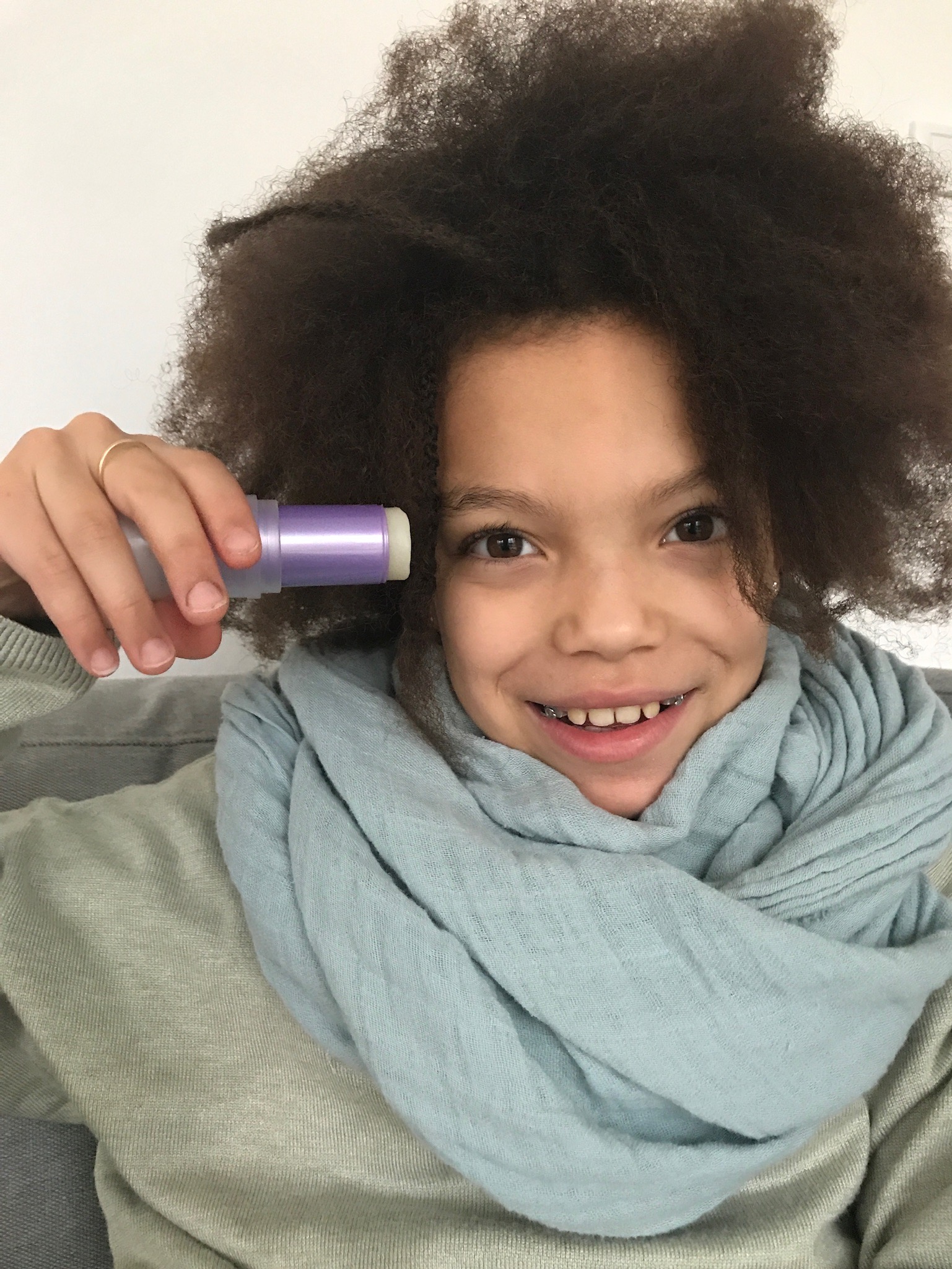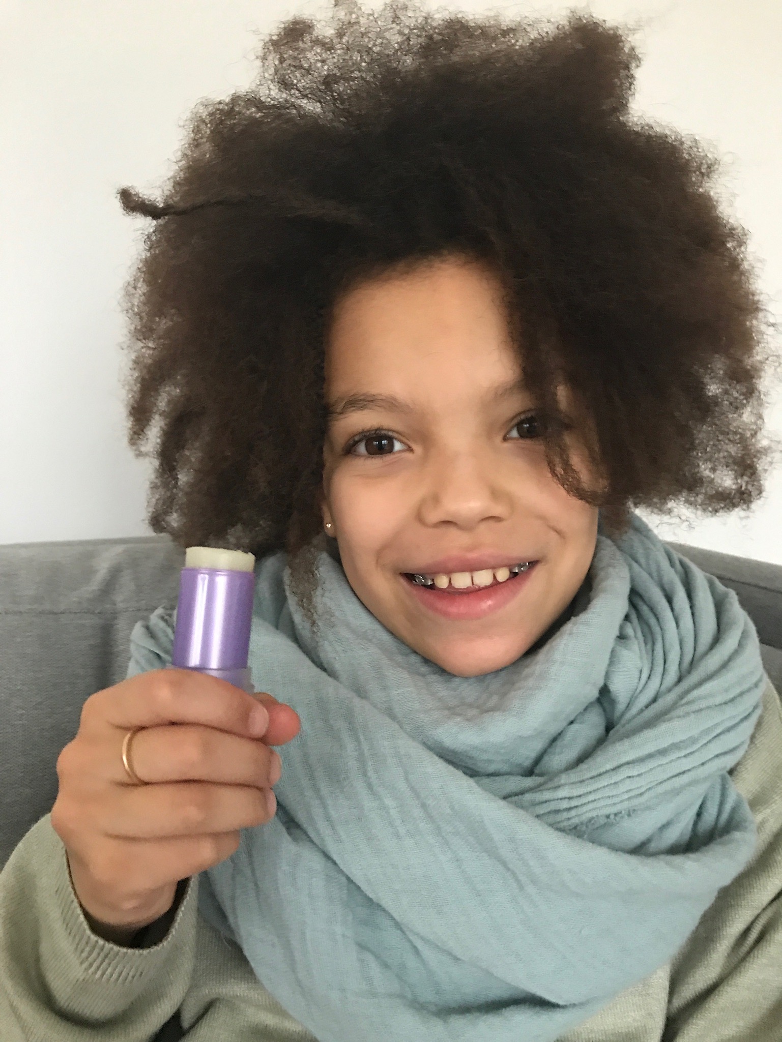 Zurzeit benutzt sie ihn sogar fast täglich, da sie von ihrer Zahnspange (ein echtes blödes schei… Teil (mit Drahtbügel und Befestigung am Kinn und an der Stirn plus Gummis, die eingehakt werden), das sie über Nacht tragen muss…) mittlerweile ein richtiges Hämatom am Kinn hat und ich denke fast, dass alleine die Zuwendung von mir jeden Abend ein wenig hilft, wenn ich sie mit Arnika eincreme bevor sie die Zahnspange anlegt.
