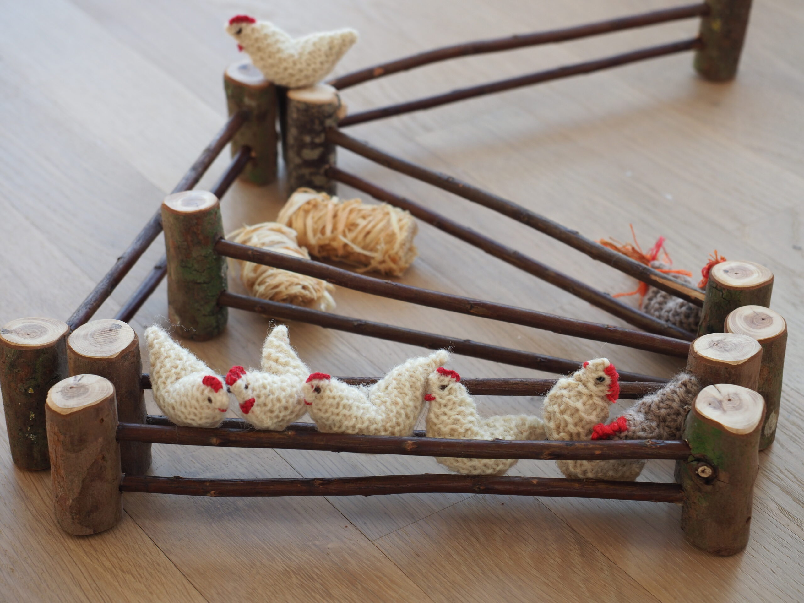 Ähnliche Hühner, den Zaun und auch schönes andere Spielzeug Ideen gibt es unter anderem in diesem empfehlenswerten Buch: Freya Jaffke: „Spielzeug von Eltern selbstgemacht“ (klick) Ich habe tatsächlich auch gerade erst entdeckt und mich total gefreut