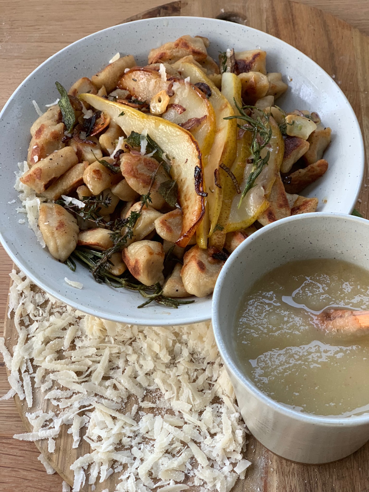 Thymian Salbei Gnocchi mit Birne in zwei Varianten,ihr braucht:
