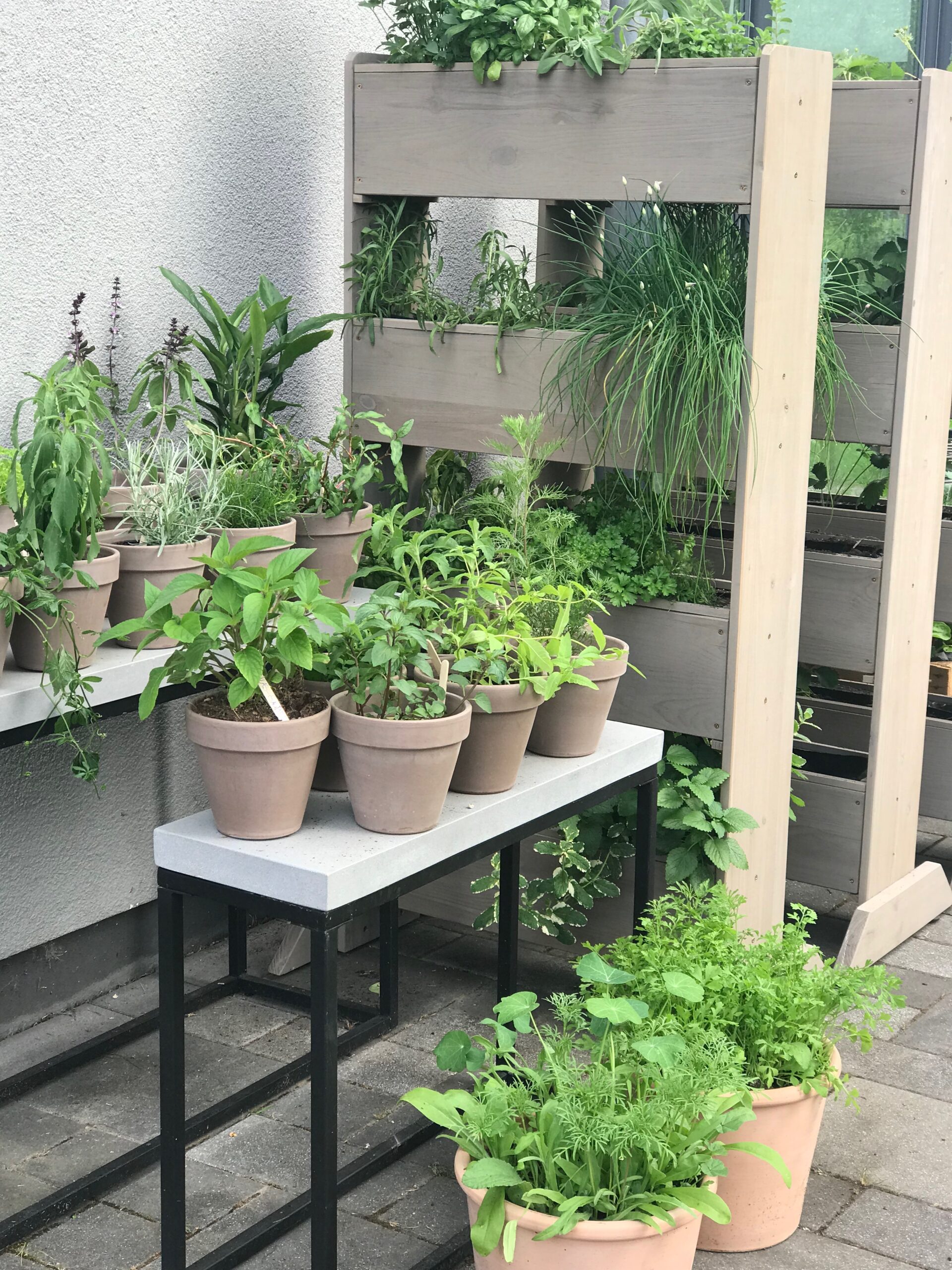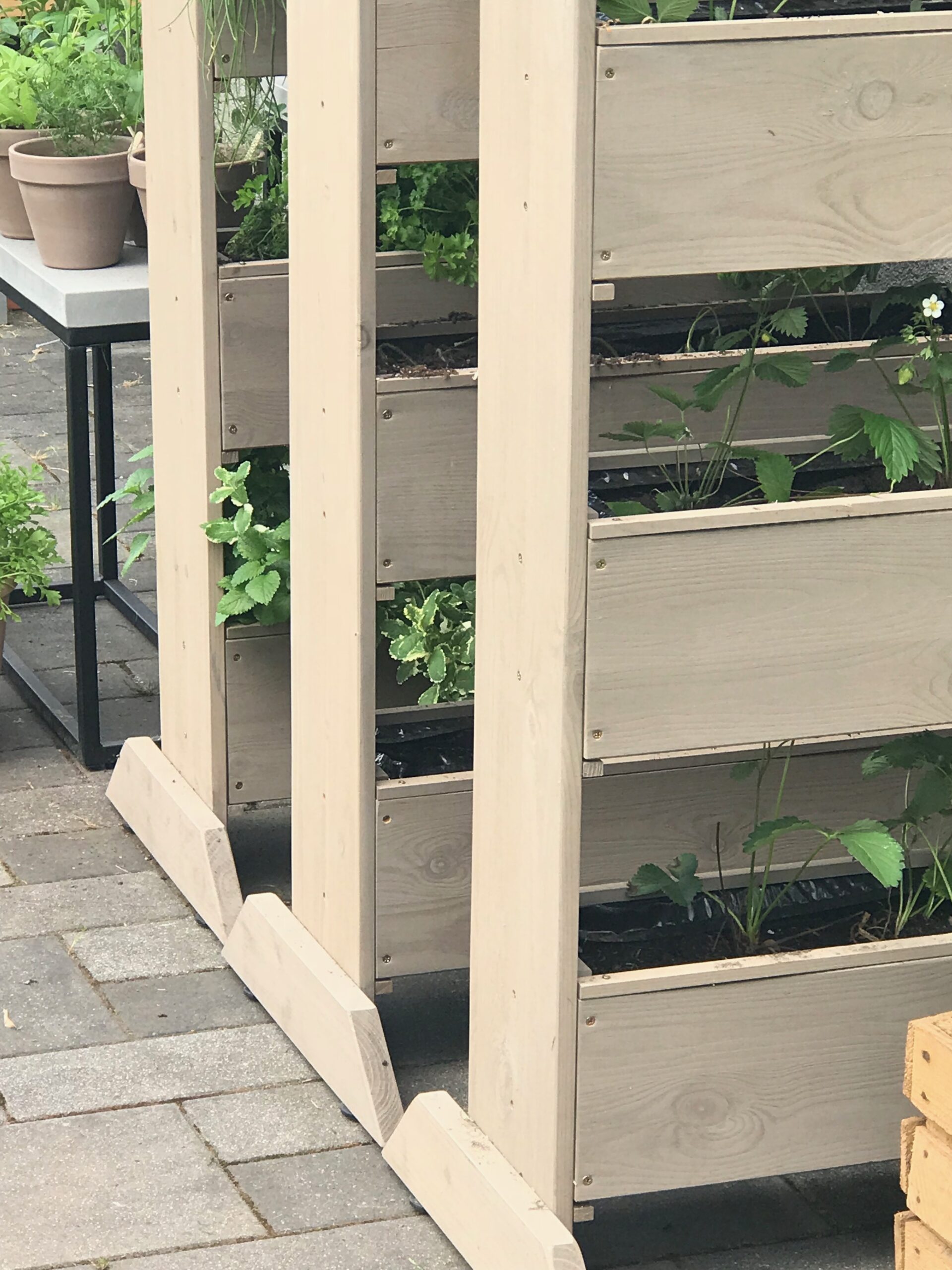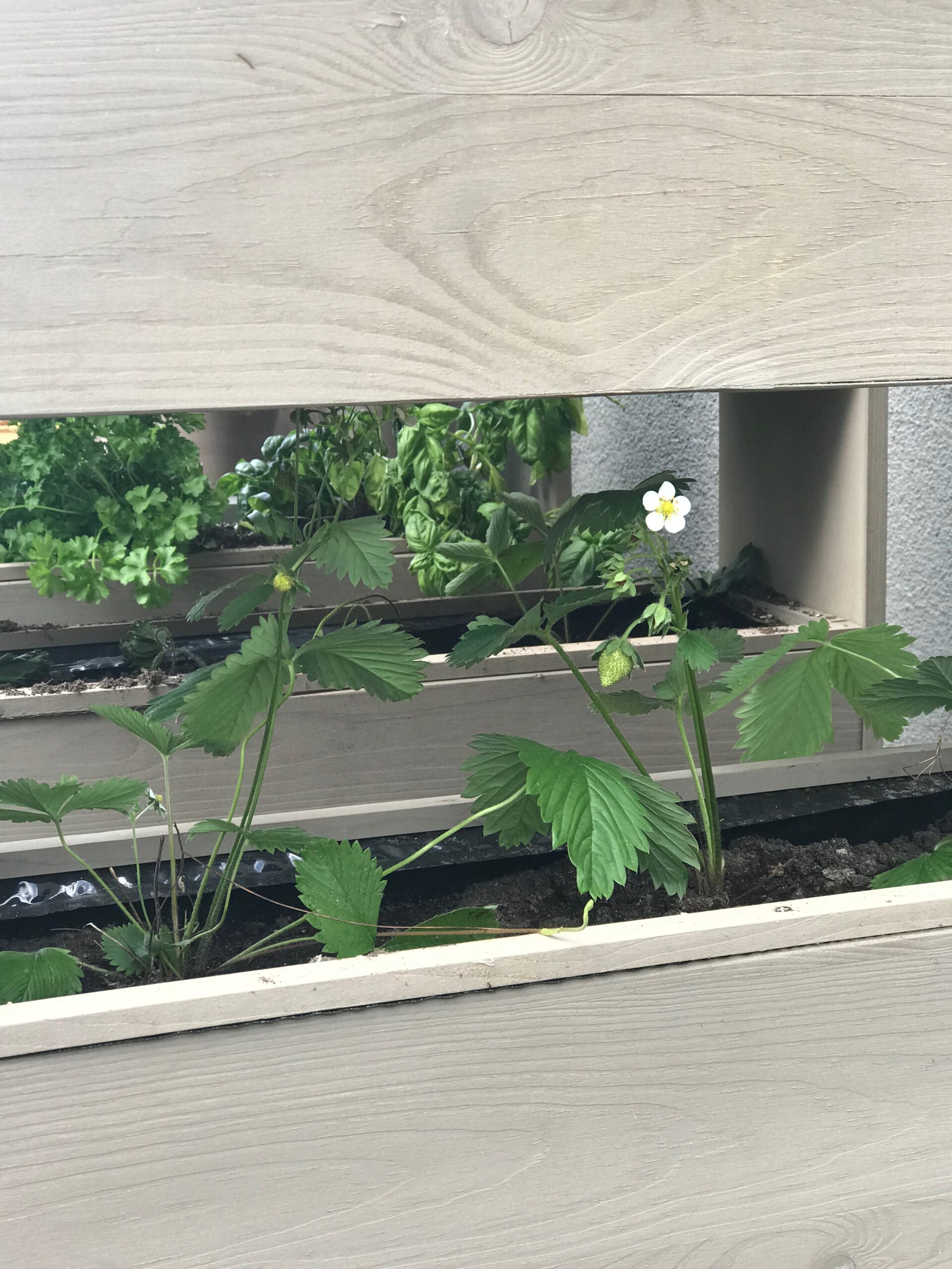 An manchen Tagen wache ich auf und habe beispielsweise die Idee von Vertikalen Beeten, die auf der Sonnenterrasse neben der Küche stehen sollen. Und in die ich meine liebsten und am häufigst benutzten Küchenkräuter Pflanze. Ich habe mir übrigens auch den großen Traum erfüllt und Erdbeeren in die Beete gepflanzt, denn die richtigen Hochbeete standen noch nicht, also musste eine schöne Alternative her. Unseren Erdbeeren geht es super und ich werde es im nächsten Jahr genauso wieder machen, denn es sieht schön aus, die Schnecken kommen nicht rein und die Pflanzen bekommen so richtig viel Sonne. Eine wirklich sehr schöne Idee kam mir vor einigen Tagen.