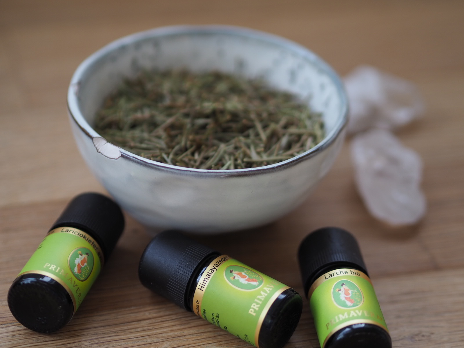 *Lärche ( sehr große Liebe ): Der Lärchenduft unterstützt die Weitung des Gedankenhorizontes und lädt dazu ein, vorgefertigte Ansichten und Meinungen zu überprüfen. Er kann dabei helfen, unklare Situationen zu klären und kluge Entscheidungen zu treffen. Die „weibliche“ Lärche steht zaghaften Menschen zur Seite und spendet sanfte Anstöße für mehr Zuversicht und Hoffnung. In stressigen Zeiten vermittelt das Lärchenöl Leichtigkeit, Heiterkeit und weckt neue Lebensgeister.