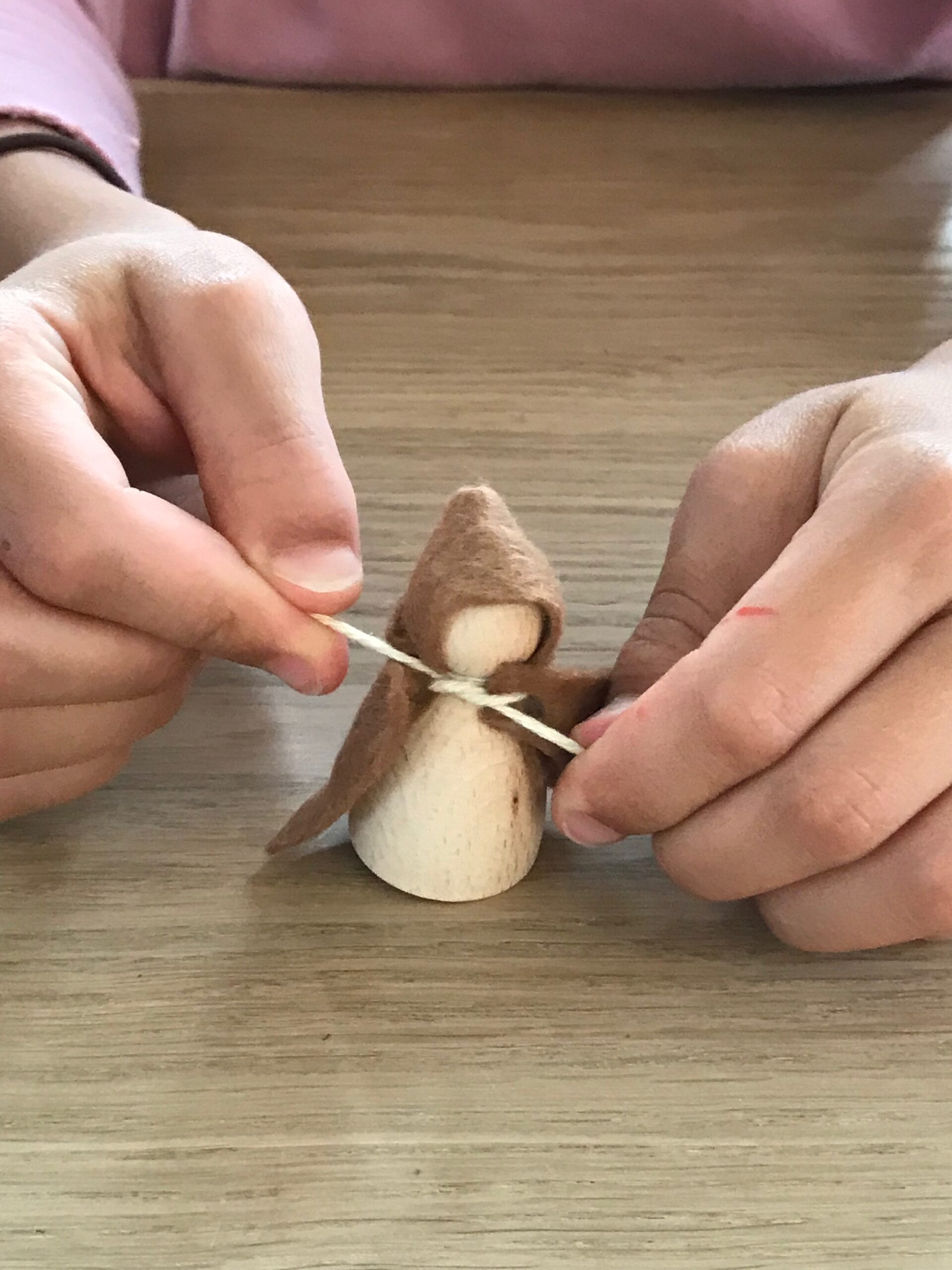 Immer wieder Mittwochs basteln, kochen oder backen die Kinder und ich gemeinsam im Jahreszeitenkreis. Letzte Woche haben ganz einfach kleine Wichtel gebastelt. Je nach Altersstufe müsst Ihr etwas mehr oder weniger dafür vorbereiten. Unsere große Tochter (10) kann sie schon ganz alleine herstellen und für unseren Sohn war das Ganze eher ein schönes Erlebnis für alle Sinne. Er konnte die Holzfiguren durch seine Finger gleiten lassen, den Filz fühlen und sich später an den fertigen Figuren erfreuen und ganz in sein fantasievolles Spiel versinken. Eine gute Aufgabe für kleine Kinder ist das Ankleben der Ohren, das Zusammenbinden des kleinen Mantels und auch das Abschneiden des Filzes, wenn sie schon gut mit der Schere umgehen können.