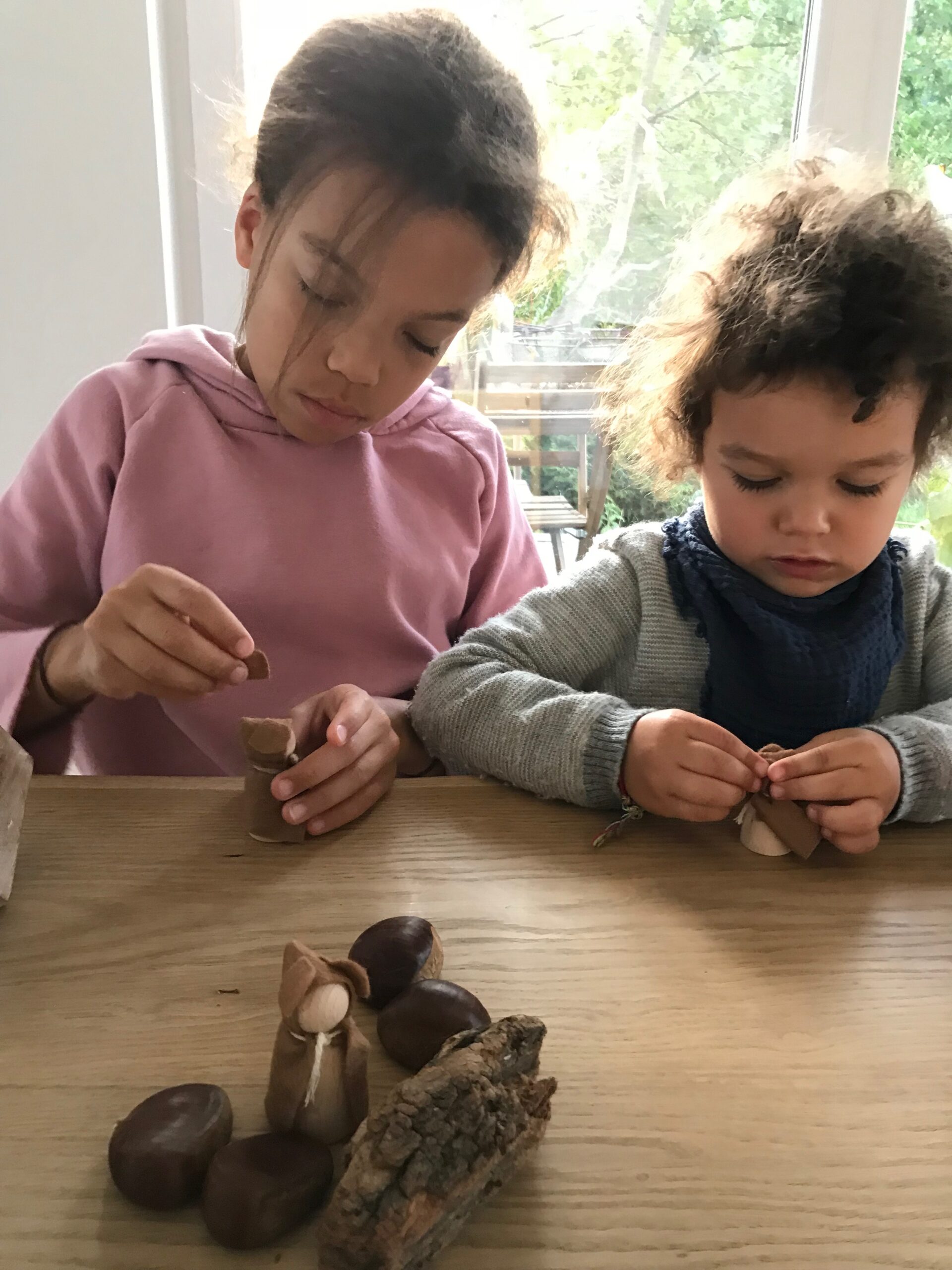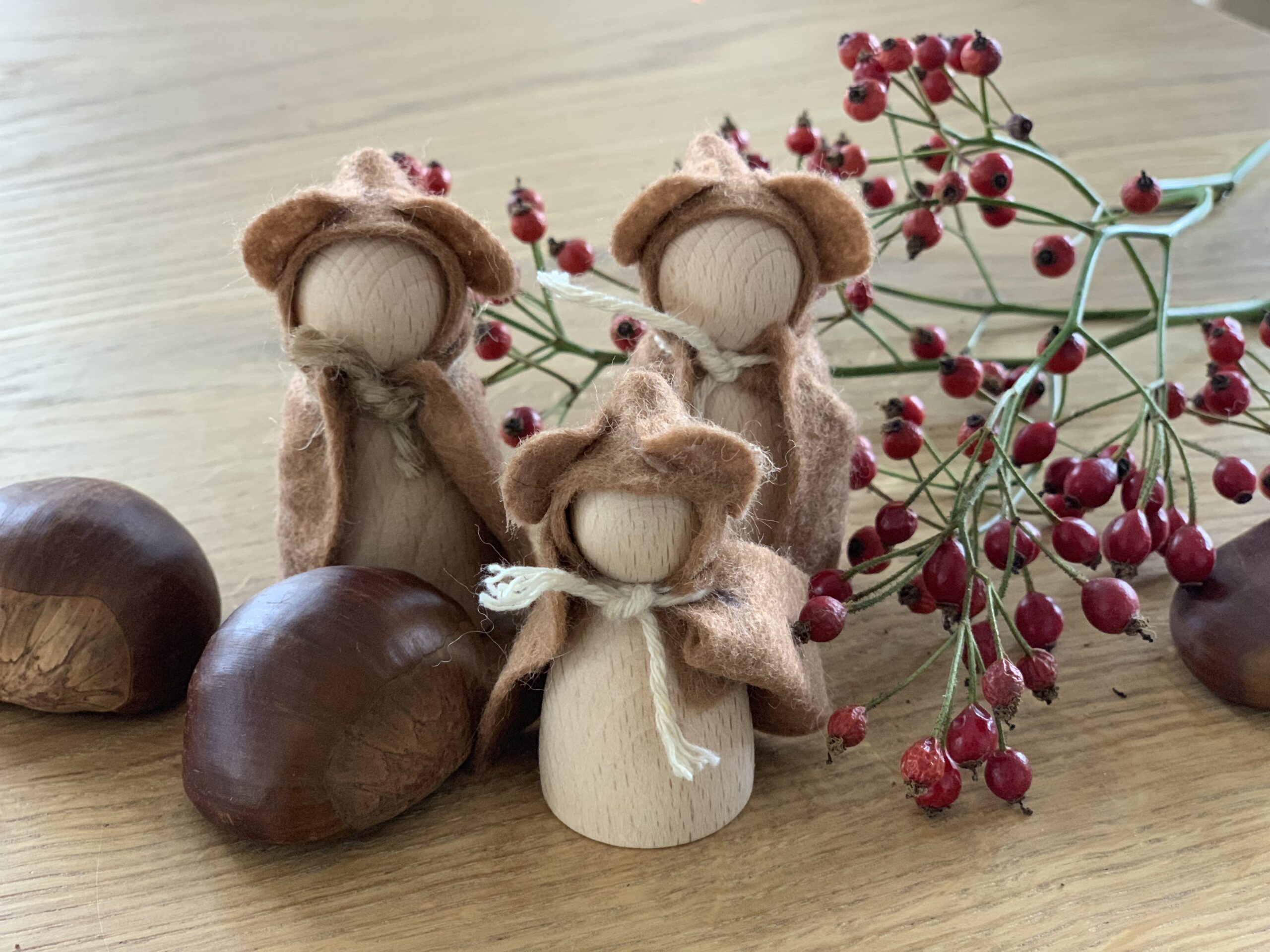 Kleine Waldorf Herbstwichtel basteln in Bärenform – zum Zeitvertreib an Regentagen für den Jahreszeitentisch oder einfach so!