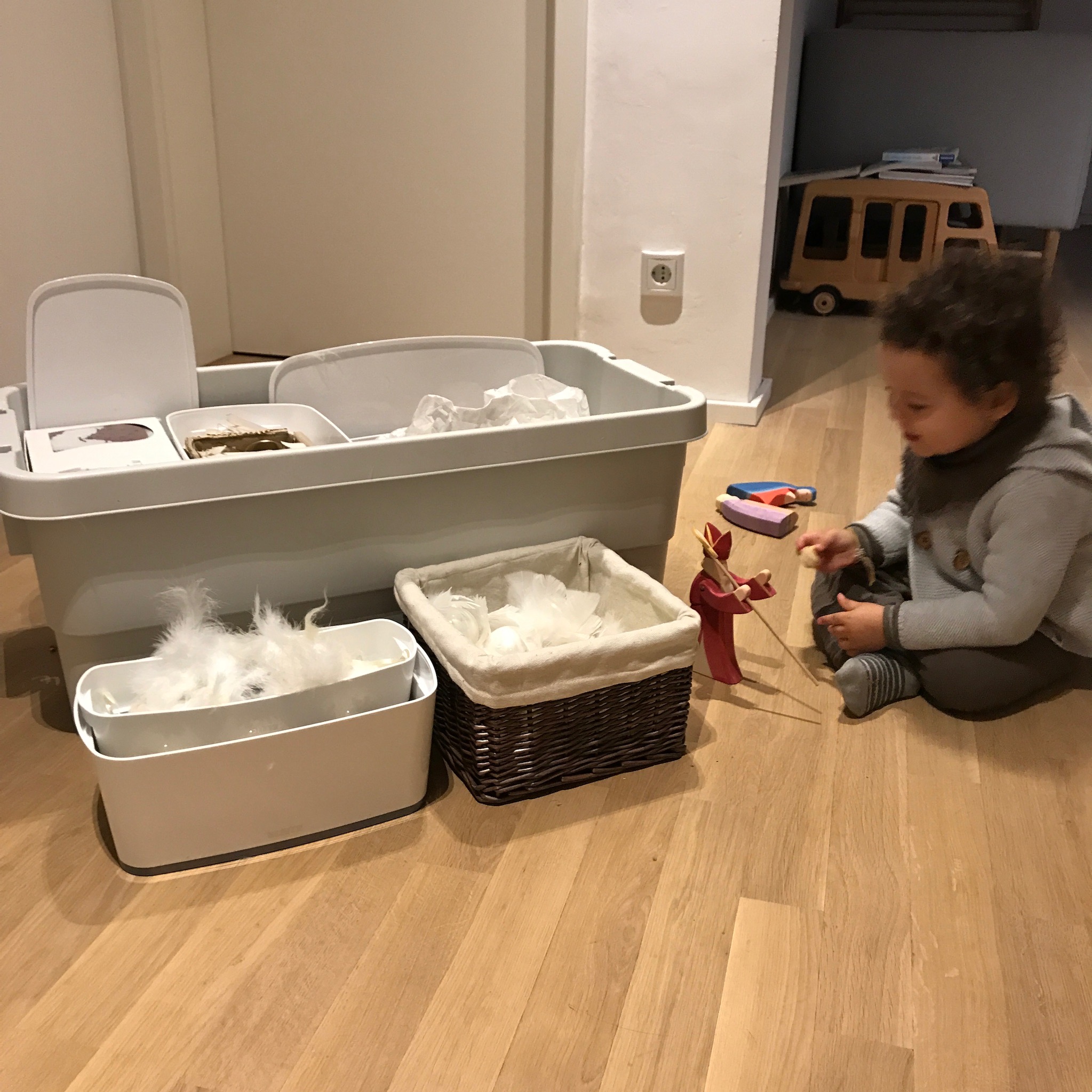 Am Montag habe ich die große Weihnachtskiste herausgeholt und voller Freude hat Nael sofort angefangen mit unserem Nikolaus, der Heiligen Familie und dem Kerzenweg zu spielen.