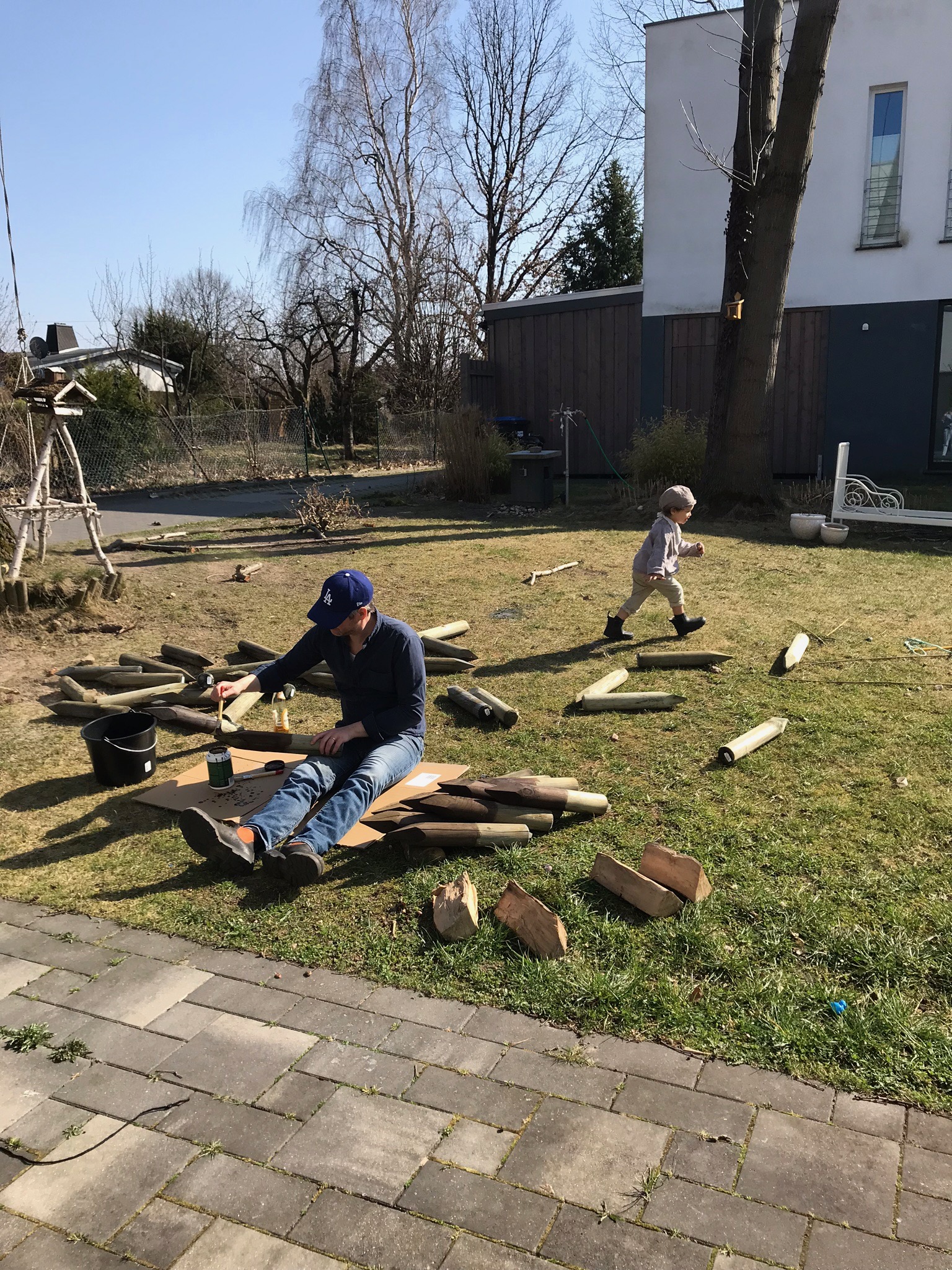 Henning hat den halben Sonntag den Sandkistenbau vorbereitet und mir immer unterschwellig erklärt das es ja ganz schön wäre wenn nicht nur zwei sondern drei oder vier Kinder (unsere) darin spielen würden….nun ja die Zeit wird es zeigen. Gerade bin ich noch etwas zwiespältig so wie hier schon mal beschrieben (klick)
