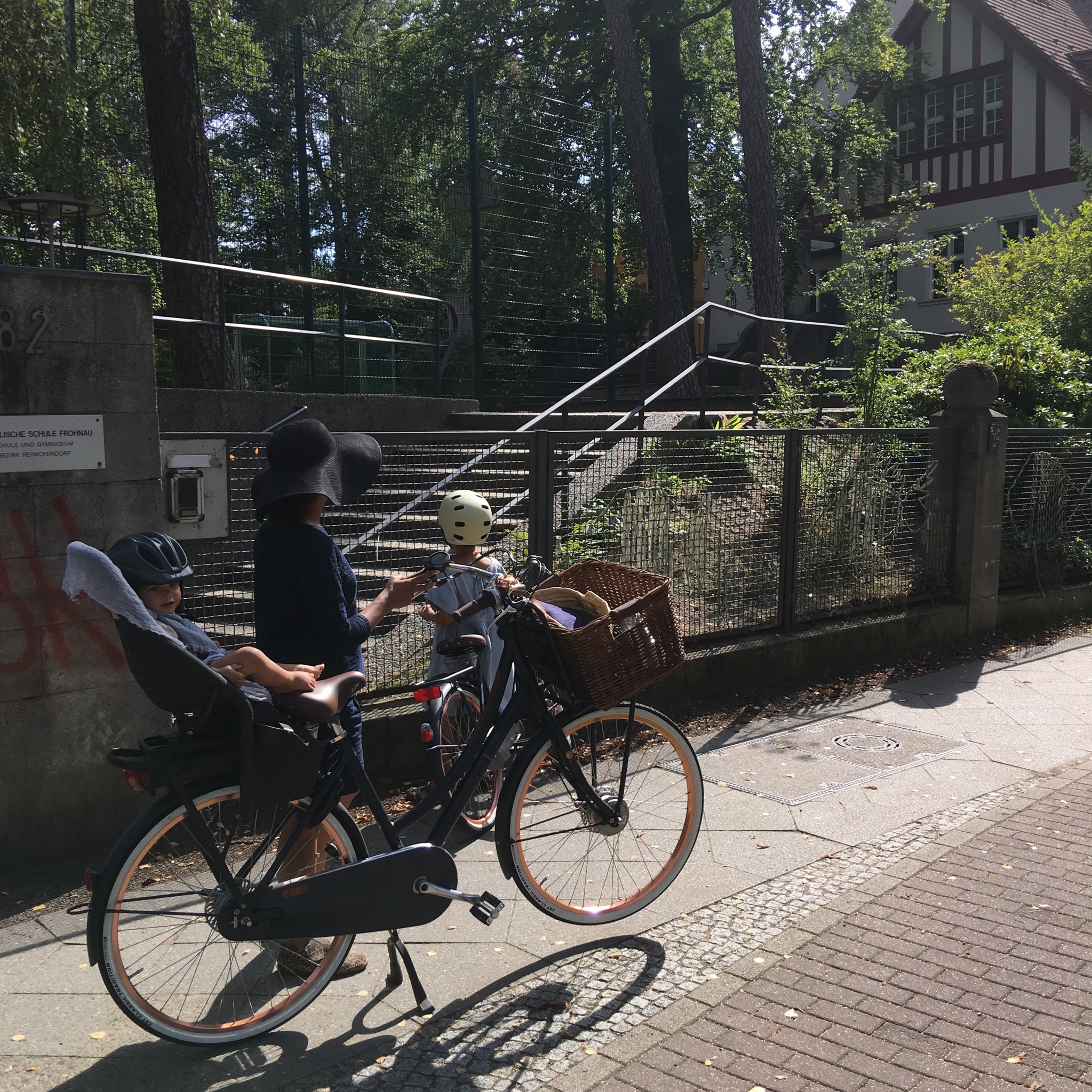 Wie ihr seht, unser Projekt “Raus aus dem Trubel ” ist ein wenig aufwendiger. Ihr könnt euch übrigens gar nicht vorstellen, wie froh ich bin, dass ich nun endlich wieder Fahrrad fahren kann. Da wir ja kein Auto haben und das Bahn fahren mit Kinderwagen in Berlin oft sehr mühselig ist, mach ich gerade 3 XXX! Endlich bin ich wieder auf zwei Rädern mobil unterwegs. Dafür nutze ich ein Transportfahrrad, das robust und zuverlässig ist. Mein Cortina Fahrrad ist perfekt, um Kind und Gepäck zu transportieren. Nael liebt seinen neuen Fahrradsitz von Yepp. Er thront dort wie ein kleiner König und freut sich über alle neuen Entdeckungen. Dank des Stauvermögens komme ich nun sicher mit all dem Einkauf, Schultaschen, Puppen, oder aber wie nun am Wochenende unserem Picknick-Proviant durch die Stadt. Wenn ich das Fahrrad abstelle, lässt sich vorn das Vorderrad arretieren, was ich als sehr angenehm empfinde, denn mein altes Hollandrad ist ständig umgefallen, wenn der Korb vorn beladen war… das passiert mir nun nicht mehr.