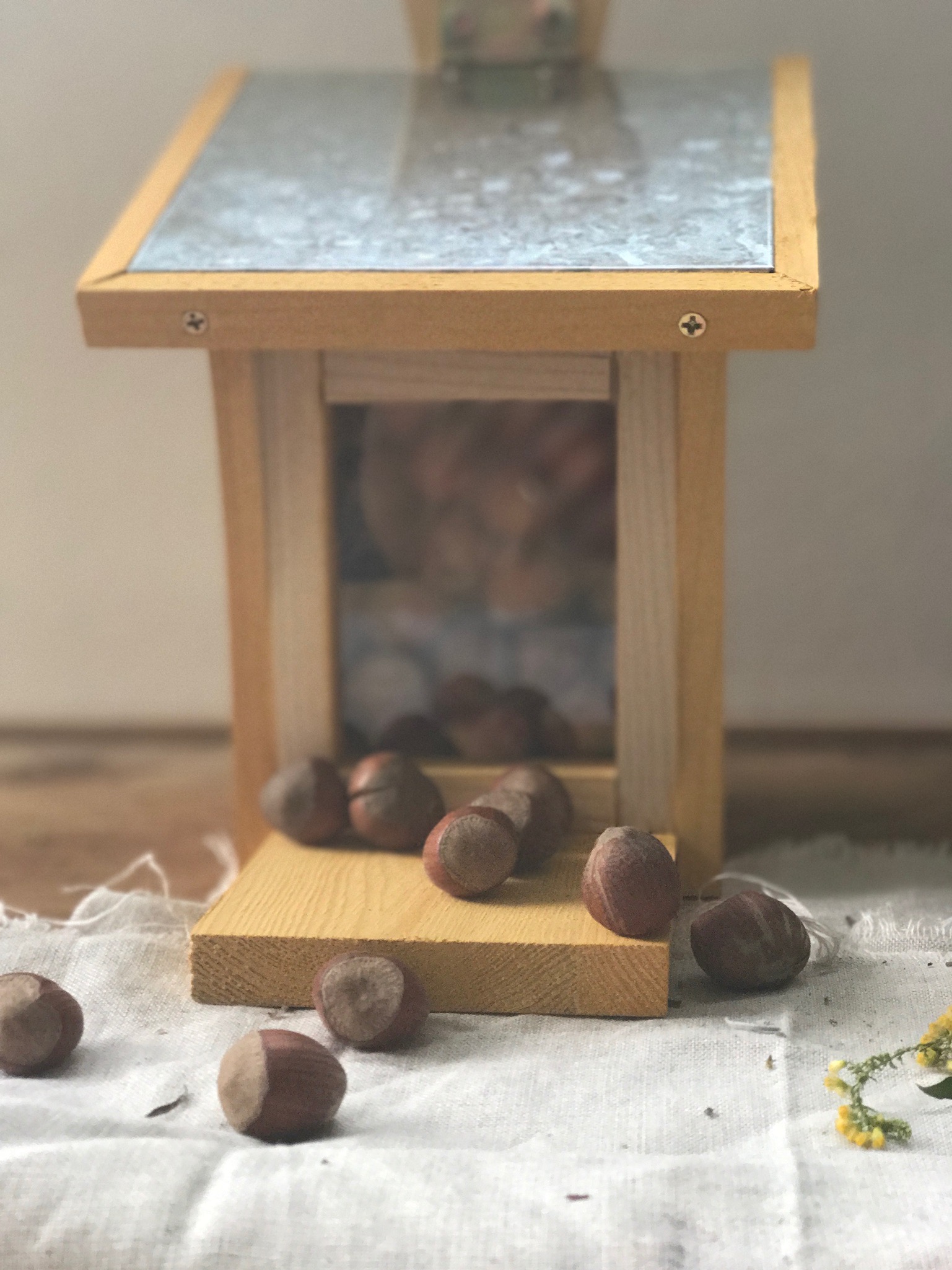Eichhörnchenhaus es müssen einige Löcher nachgebort werden aber ansosntne ist es prima und kam auch schon lasiert zu uns.