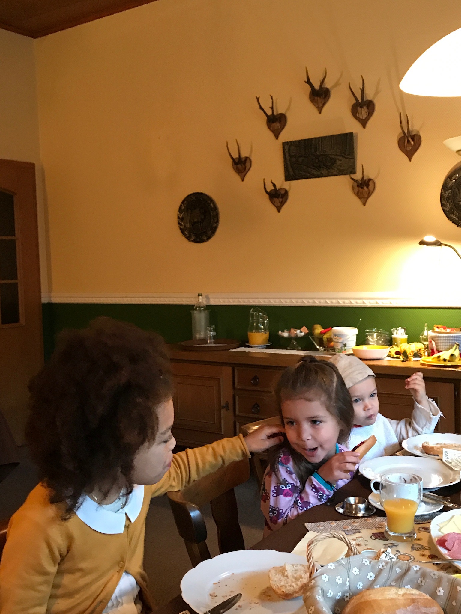 Wir waren am Wochenende auf einer Familienfeier in Niedersachsen und lustigerweise haben die Kinder und ich das erste Mal in dem Gasthof meiner Oma und Opa geschlafen. Bei meinen Eltern wäre es nämlich tatsächlich etwas voll geworden wären wir alle da gewesen, so hatte meine Tante die Idee uns auszulagern. Die Kinder lieben es in Hotels zu schlafen (keine Ahnung warum? Ich für meinen Teil schlafe am Liebsten zu Hause) aber am letzten Wochenende es war auch für mich total schön ! Das Schönste war, dass wir im alten Ehebett meiner Urgroßeltern und im Zimmer meiner Großeltern geschlafen haben . Ich liebe diese alten Möbel ! Ich hätte das ganze Zimmer so wie es ist gerne einfach mitgenommen !