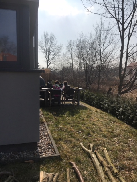 Endlich wieder draußen essen ! Auch wenn es noch ein wenig kalt ist haben die Kinder warm eingepackt die Gartensaisson eröffnet ! Mein Mann hat gefühlt den ganzen Garten umgegraben, Laénas Papa hat meinen neuen Wasserfilter eingebaut. Nael hat den gesamten Nachmittag verschlafen, und ich bin morgens um 10:00 ins Lobetal gefahren um dort zum einen Misteln zu ernten, diese zum Teil an Ort und Stelle zu veraschen und den Rest ganz Glückselig nach Hause zu tragen. Ich habe heute schon einen Auszug mit Alkohol und Essig angesetzt und die Reste trocknen gerade im Gästezimmer. Ich werde euch gerne mehr davon berichten, wenn es euch interessiert! Und es gibt noch eine schöne Neuigkeit ! Ich werde im Spätsommer noch mal eine kleine Ausbildung anfangen in Kräuterkunde. Ich stelle es mir ganz schön vor es noch mal richtig zu lernen und nicht meine Kräuterliebe im Selbststudium zu verbringen. In diesem Sinne alles Liebe,