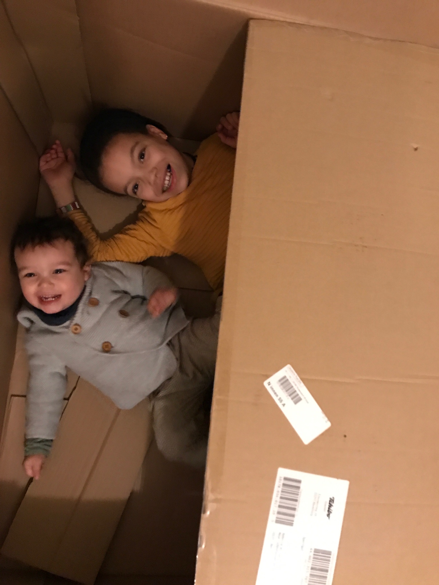 Ach wie lustig, wir haben zur Zeit auch einen großen Pappkarton stehen, der bespielt wird und der Grund ist ähnlich.