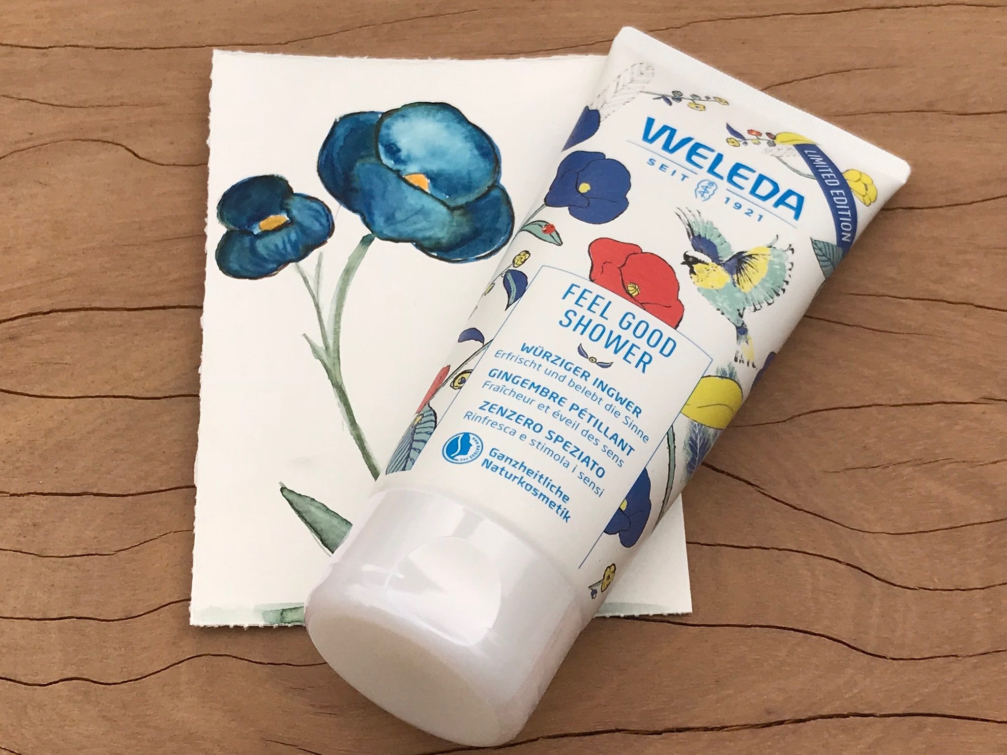 Ich habe vor kurzem die schöne limitierte Feel Good Shower von Weleda entdeckt und mittlerweile schon oft verschenkt! Diese Sommerdusche fühlt sich an wie ein beschwingter Tanz im Sommerregen. Würziger Ingwerduft kitzelt die Nase, belebt Körper und Geist. Die hautverwöhnende Creme mit wertvollem Bio-Sesamöl reinigt sanft und sorgt für streichelzarte Haut. Die Feel Good Shower belebt den ganzen Körper durch ihre einzigartige Duftkomposition aus würzigem Ingwer, frischer Citronella und herbem Zedernholz.